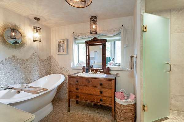 - Additional Living Quarters, Fireplace, Main Level Primary, Sauna, Wet Bar