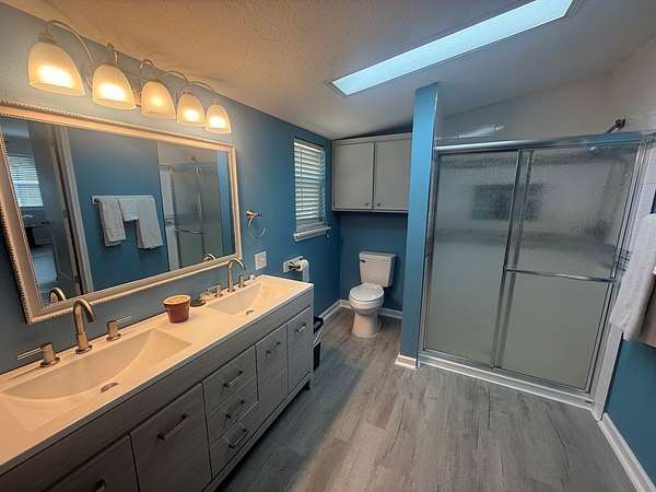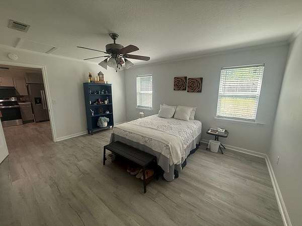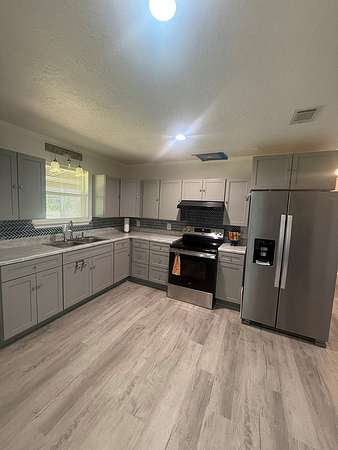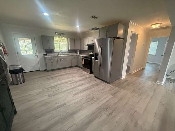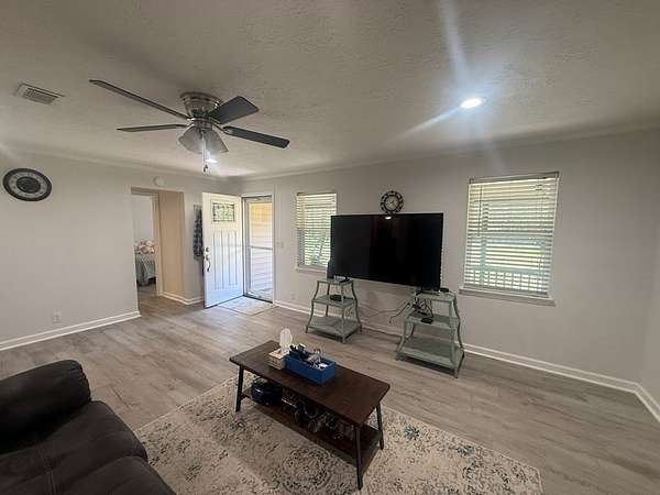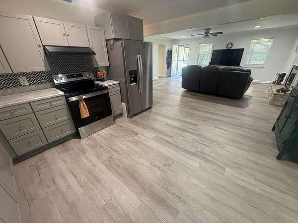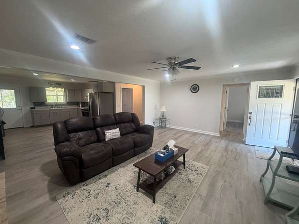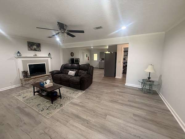 Like new construction, completely rebuilt down to the studs in 2024. Updates include a new HVAC system, water heater, cabinets, windows, exterior and interior doors, durable LVP flooring, and like-new appliances. The home features a spacious master suite with space ready for a jet or soaker tub, split bedroom layout, large closets, and generously sized bedrooms. Enjoy a neutral color palette, cozy electric fireplace, and great covered porches that extend the living space. Additional features include an oversized laundry room with great storage and function, detached two-car carport, conventional septic, and water well. The property also offers an impressive 1,800 sq ft shop on a slab with two roll-up doors and a walk-through door for easy access. Oversized covered parking provides RV and boat storage, and the yard is fully fenced—move-in ready and waiting for you to make it your own.
