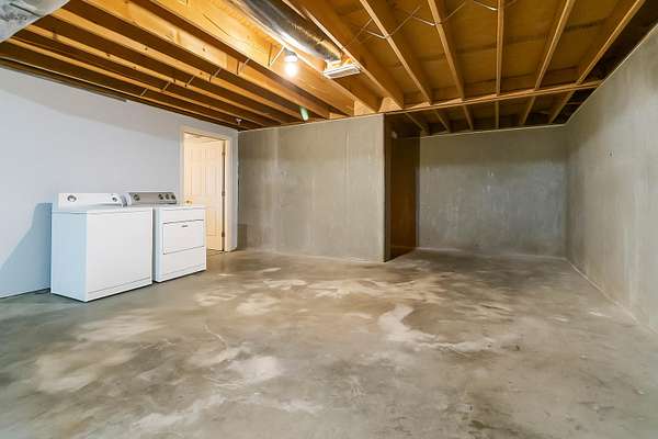 - Concrete, Exterior Entry, Interior Entry, Partially Finished, Walk-Out Access