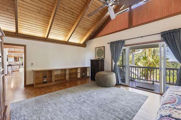 Experience stunning ocean views paired with a majestic mountain backdrop on this exquisite 9.53-acre estate. Embrace the tranquil lifestyle that Hana has to offer, nestled at the end of a peaceful cul-de-sac. The lush, vibrant grounds provide a wealth of agricultural opportunities while the cozy interior invites relaxation. Featuring open beam ceilings, hardwood floors, a warm fireplace, air conditioning, and a wraparound deck, this home perfectly balances comfort and serenity. Explore your own tropical paradise filled with colorful flowers and a variety of fruit trees. The property also includes a spacious covered recreational area, a two-car garage, and caretaker's quarters for added convenience. Just a short drive from Hana Airport, Waianapanapa State Park, beautiful beaches including the famous Hamoa Beach, as well as local restaurants, food trucks, farm stands, art galleries, and so much more! Contact your favorite realtor today to arrange a private showing!