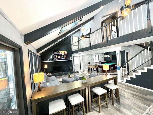 Nestled on 1.52 private acres with 500 feet of frontage on Deep Creek Lake, this 5-bedroom, 4.5-bath home combines comfort with exceptional waterfront living. The open floor plan features soaring two-story ceilings with exposed beams, wood flooring, upgraded countertops, and a striking brick fireplace. Outdoor spaces include multiple decks, balconies, porches, and a hot tub-perfect for entertaining or relaxing while taking in serene lake and wooded views. With private access and riparian rights, enjoy year-round activities, from kayaking and swimming in the summer to peaceful lakefront living in every season. Conveniently located just minutes from Wisp Resort, shopping, dining, and local attractions, this property truly offers the best of Deep Creek Lake living.