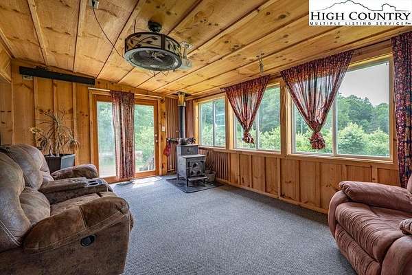Does the sound of a seclusion but only 15 minutes to town appeal to you? If so, this home would be an ideal full time residence, vacation home or investment opportunity. The home is on a permanent foundation and sits nicely on a level yard overlooking a mature fruit tree orchard. The property expands up the hill side and has potential to build an additional home, add a camp site or just bask in the wooded serenity and enjoy some longer range mountain views. As you enter the property you will notice the home has been updated and renovated to add custom craftsmanship, true southern charm and hospitality. The home offers a spacious and free flowing concept to allow plenty of room for family and friends to visit. On the front of the home you will notice an enclosed space that would be great for a media room, library or office. You can cuddle up on the couch by Willard the wood stove and enjoy a nice evening watching movies or the snow falling. At over 3600 feet in elevation this property will boast the beauty of our seasonal changes here in the High Country. Step out back with a cup of coffee and sit by the pond and enjoy the quietness with the sounds nature and of the small stream trickling by. Lastly, you shouldn't worry about losing power here, as the sellers have installed a whole home propane fueled generator for peace of mind in case of a power outage.
