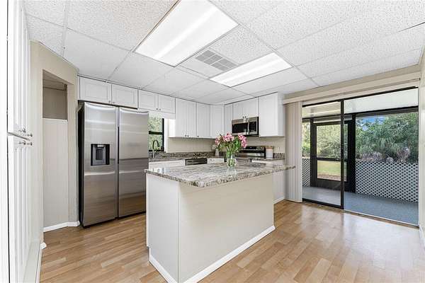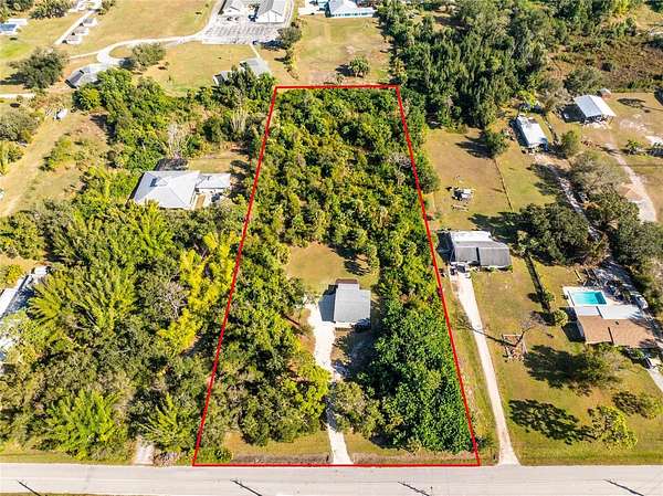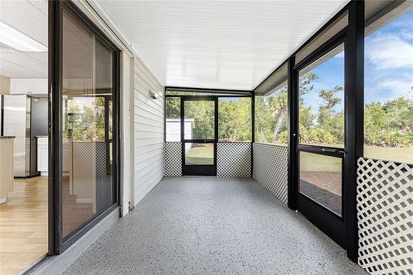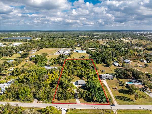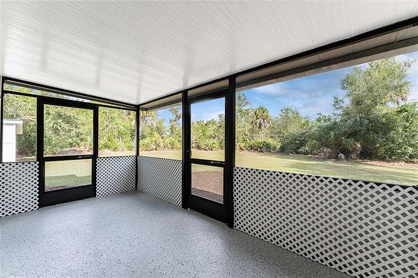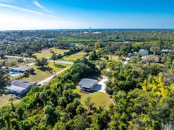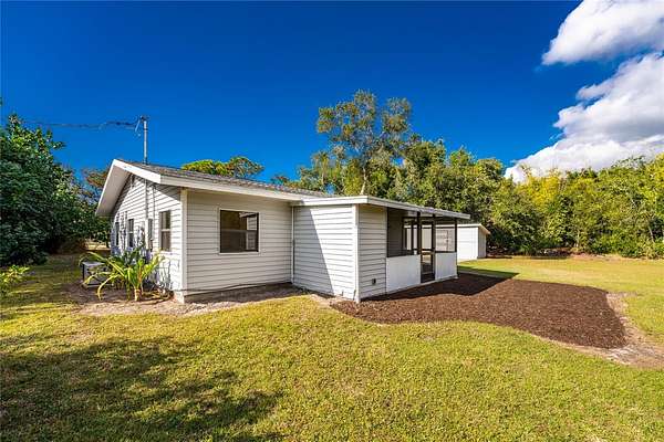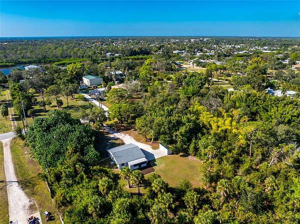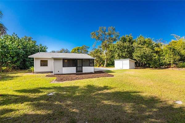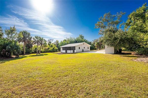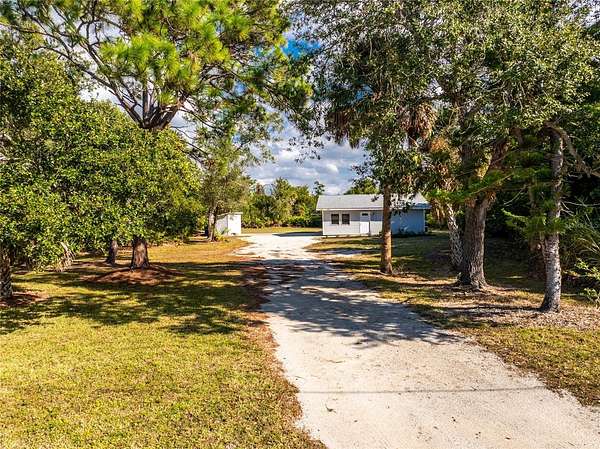 2.5 Acres of Opportunity Just Minutes from Englewood Beach! This is the perfect time to make this charming two bedroom, one bathroom Englewood Gardens home your own. The property offers the option to purchase a membership to the Englewood Gardens Beach Club, providing access to Englewood Beach along with a bayfront boardwalk and dock, bayside kayak storage and launch, a clubhouse, picnic tables, patio and gazebo with gas grills, Wi-Fi access, special events, and the ability to reserve the clubhouse for private gatherings. Exceptional privacy and room to grow create an ideal setting to expand this property into a future compound. A long driveway welcomes you in, allowing the home to sit comfortably set back from the road and surrounded by mature trees for a peaceful, secluded feel. Inside, the bright and open great room features laminate wood flooring and newer carpet, offering a comfortable space for everyday living. The well designed kitchen includes granite countertops, a center island, white cabinetry with soft close hinges, and stainless steel appliances, making it both functional and inviting. Both bedrooms are nicely sized, while the bathroom is thoughtfully finished with dual granite topped sinks and a large step-in fully tiled shower with glass doors and a built-in niche. Sliding doors from the kitchen open to the screened lanai, extending your living space outdoors and providing the perfect spot to unwind with morning coffee or an evening cocktail while enjoying the natural sounds of the wooded surroundings. Additional highlights include a storage shed with a newer roof, a 2020 roof, and a 2020 HVAC system. Conveniently located near Historic Dearborn Street, you'll enjoy easy access to local boutiques, waterfront dining, tiki bars, and live music that give Englewood its laid back coastal charm. Englewood Beach is only about three miles away, making spontaneous beach days, sunset walks, and Gulf breezes part of everyday life. The area also offers abundant recreational opportunities including boating, fishing, kayaking, paddleboarding, hiking nearby nature trails, and exploring the surrounding waterways. With shopping, dining, and medical services all close at hand, this home at 285 S. Oxford Drive delivers a relaxed coastal lifestyle that blends convenience, outdoor adventure, and peaceful privacy.
