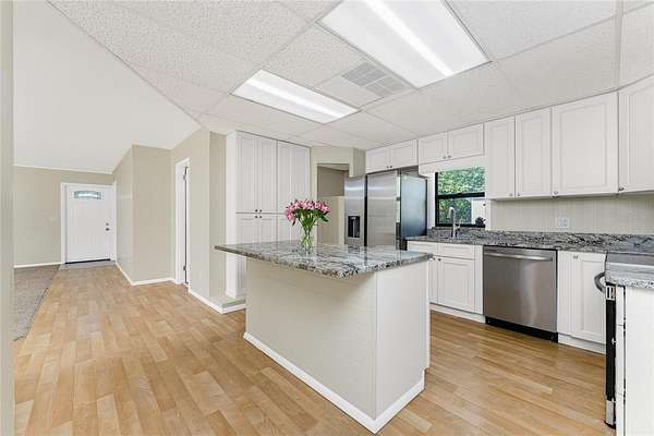 - Ceiling Fans(s), Eat-In Kitchen, Open Floorplan, Split Bedroom, Stone Counters, Thermostat, Window Treatments