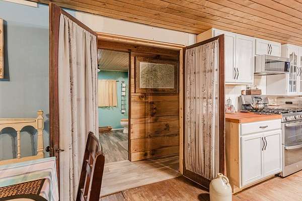 Discover the charm of homestead living just minutes from downtown Bryson City. This updated rustic log cabin sits on 7 acres of beautifully maintained property offering everything you need for a self-sufficient lifestyle--or simply a peaceful mountain retreat. Set up for a variety of animals and rich with native plants, vibrant flowers, fruit trees, and garden space, the land is ideal for those seeking a homestead lifestyle. A small creek sits across the road and can be heard while relaxing on the front porch. Inside, the 3-bedroom, 2-bath cabin has been thoughtfully updated while preserving its cozy, rustic character. The brand-new kitchen features a gas range with double oven--perfect for home cooks or entertainers--and the bathrooms have been stylishly renovated. A spacious bonus room offers flexibility for a home office, hobby room, or guest space .Enjoy easy year-round access off a state-maintained road, making it a rare find for a homestead-style property so close to town. Whether you're looking to garden, raise animals, or simply relax by the creek, this property offers the perfect blend of convenience, comfort, and country living.