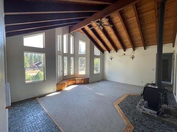 Charming Mountain Home on 3.12 acres in a desirable north Portola neighborhood. Newly painted and zoned for farm animals, this home is a must see. Nestled on a peaceful wooded parcel, this 3-bedroom 2-bath home offers the perfect blend of mountain charm and modern comfort. Whether it's your dream retreat, full-time home or short-term rental investment, this inviting property checks all the boxes. Step inside to a bright and spacious newly painted great room with vaulted ceilings, large windows that fill the space with natural light, and a cozy wood stove- ideal for mountain living. The open floorplan is perfect for both relaxing and entertaining family and friends. Enjoy a large dining area, a separate laundry room, and a generous deck where you can enjoy the outdoors. High speed fiber is internet available. Additional outdoor features include 3 storage sheds, a covered carport for RV or boat parking, and lots of space for gardening. Conveniently located near Lake Davis, enjoy easy access to hiking, boating and mountain biking, all while just minutes away from the amenities of downtown Portola and Graeagle. Also enjoy the ease of access to the Highway for quick trips to Reno for shopping and Lake Tahoe. Annual road maintenance fee is $400. Don't miss out on the opportunity to make this charming property your own.