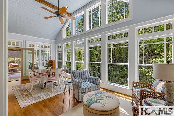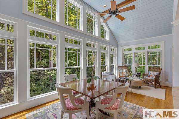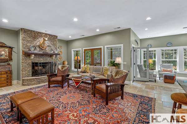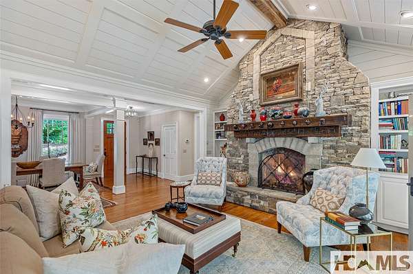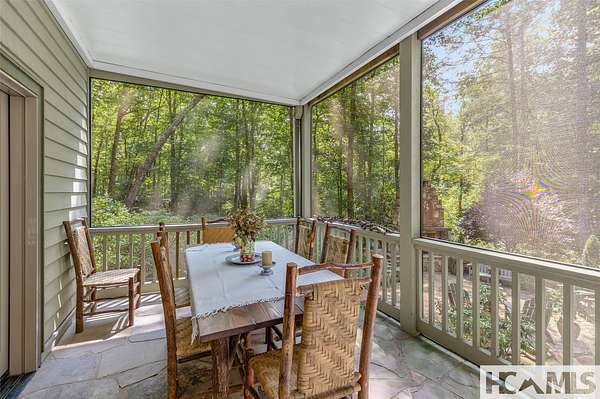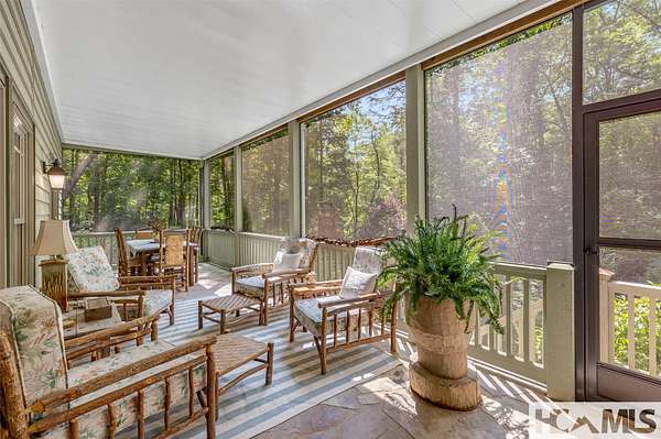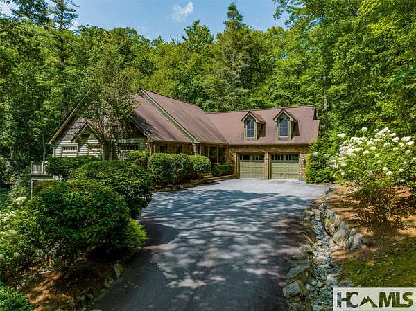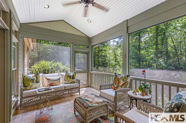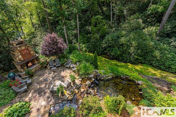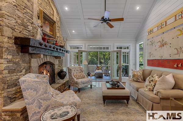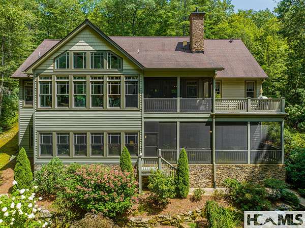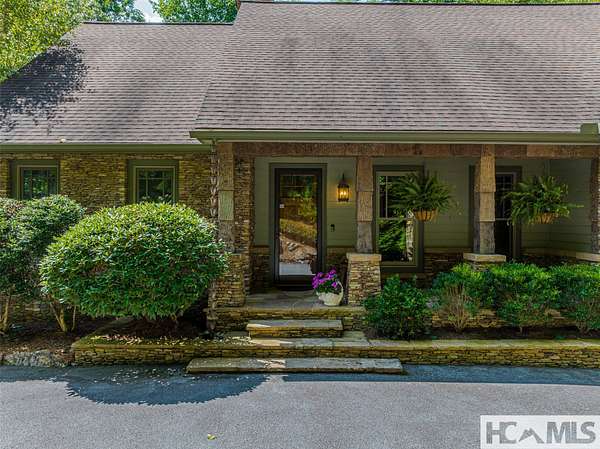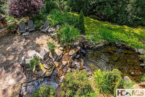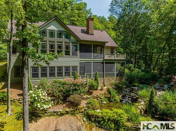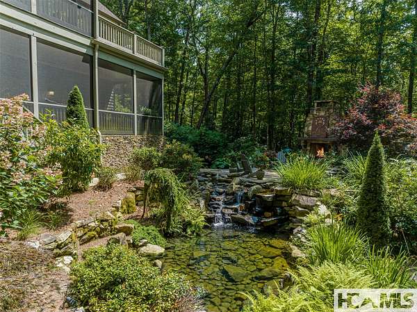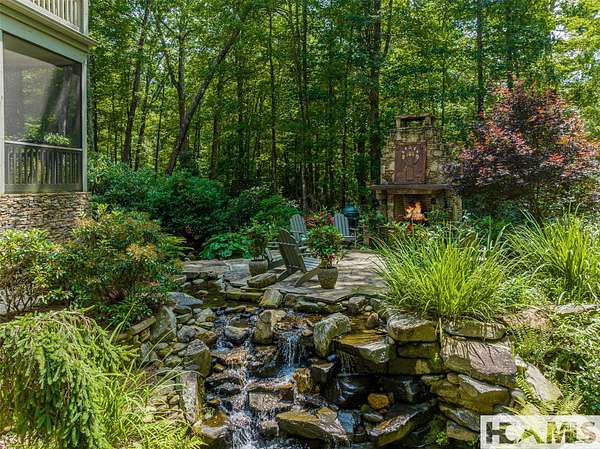 Welcome to this exceptional retreat in the gated community of Stonefly! This rare gem offers stunning curb appeal, a thoughtful floorplan, beautifully furnished interiors, and extraordinary outdoor living spaces-all just minutes from the shops, dining, and charm of Cashiers village and its many walking trails, making this an excellent choice for a walk-to-town location. Entering the home, you're greeted by timeless hardwood floors, rich crown molding, and a stunning floor-to-cathedral-ceiling stone fireplace - a true focal point of the main living space. Just beyond, step into the spacious screened porch where the soothing sound of a stream-fed pond water feature invites you to unwind and let the day's stresses fade away. Adjacent to the great room is the large, eat-in chef's kitchen, complete with a charming keeping room - the perfect place for casual gatherings or morning coffee. The primary suite offers a serene retreat, decorated in peaceful spa-inspired tones. On the opposite end of the main floor, two guest rooms repurposed as a cozy den and dedicated office provide comfort and flexibility, allowing for convenient one-level living. Downstairs, enjoy a roomy family room featuring a wet bar, stone fireplace, screened porch, and comfortable guest accommodations. From this level, step out to the stone patio and outdoor fireplace - both overlooking the mesmerizing water feature that defines the property's tranquil setting. Exceptional in every way, this home offers privacy, quiet, and peace - the perfect blend of natural beauty and refined comfort.