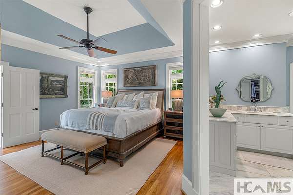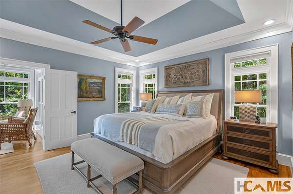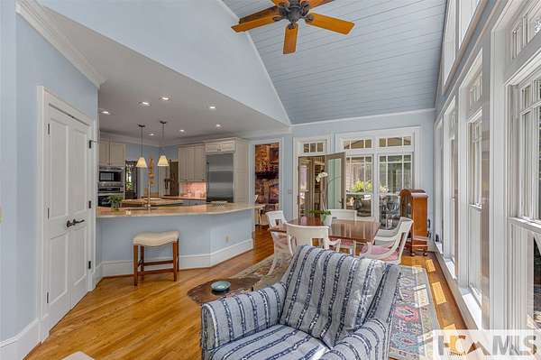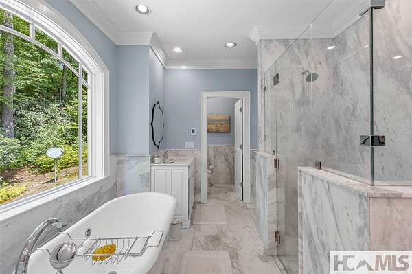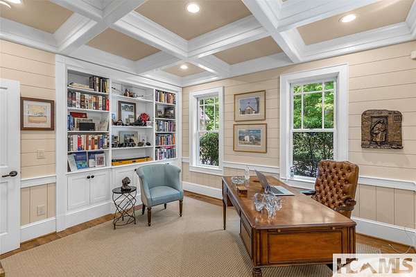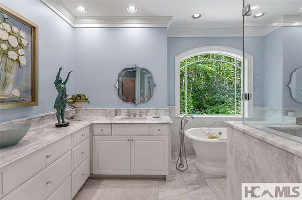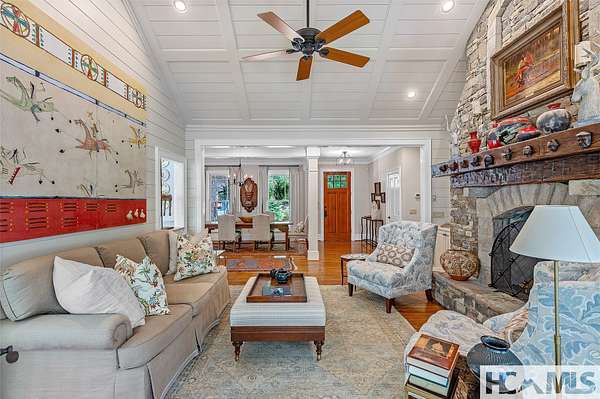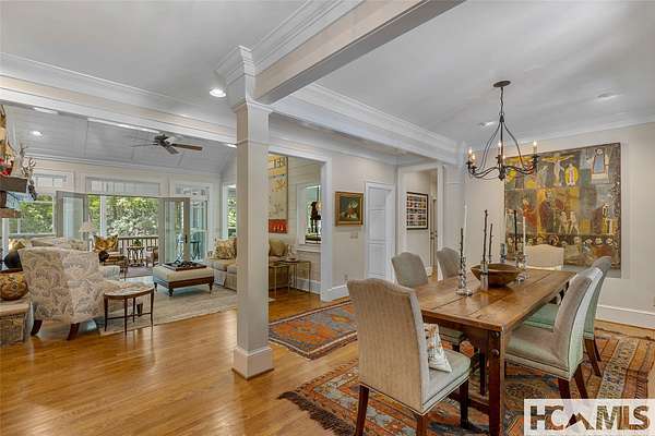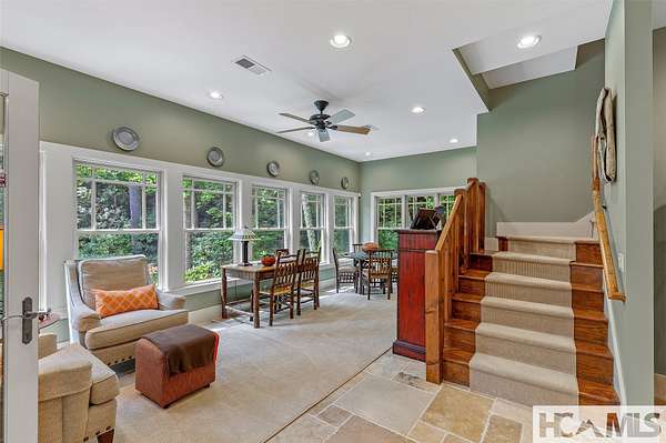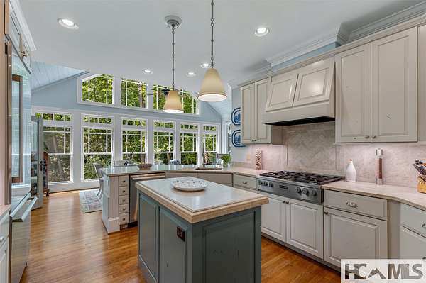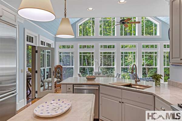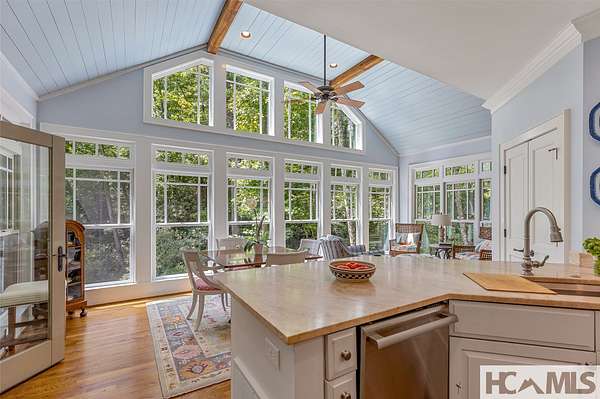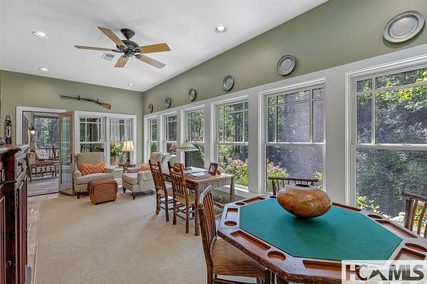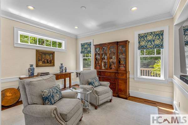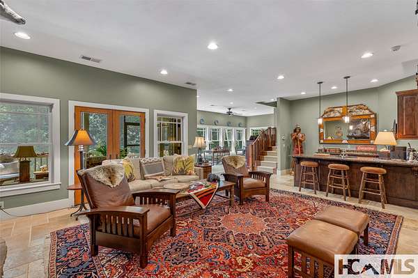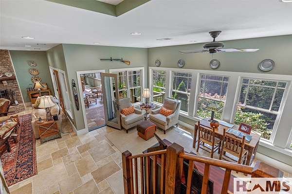 Welcome to this exceptional retreat in the gated community of Stonefly! This rare gem offers stunning curb appeal, a thoughtful floorplan, beautifully furnished interiors, and extraordinary outdoor living spaces-all just minutes from the shops, dining, and charm of Cashiers village and its many walking trails, making this an excellent choice for a walk-to-town location. Entering the home, you're greeted by timeless hardwood floors, rich crown molding, and a stunning floor-to-cathedral-ceiling stone fireplace - a true focal point of the main living space. Just beyond, step into the spacious screened porch where the soothing sound of a stream-fed pond water feature invites you to unwind and let the day's stresses fade away. Adjacent to the great room is the large, eat-in chef's kitchen, complete with a charming keeping room - the perfect place for casual gatherings or morning coffee. The primary suite offers a serene retreat, decorated in peaceful spa-inspired tones. On the opposite end of the main floor, two guest rooms repurposed as a cozy den and dedicated office provide comfort and flexibility, allowing for convenient one-level living. Downstairs, enjoy a roomy family room featuring a wet bar, stone fireplace, screened porch, and comfortable guest accommodations. From this level, step out to the stone patio and outdoor fireplace - both overlooking the mesmerizing water feature that defines the property's tranquil setting. Exceptional in every way, this home offers privacy, quiet, and peace - the perfect blend of natural beauty and refined comfort.