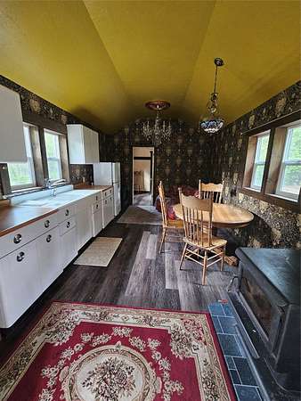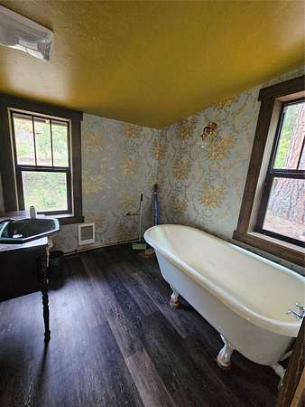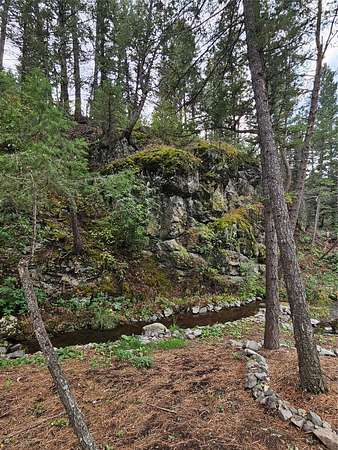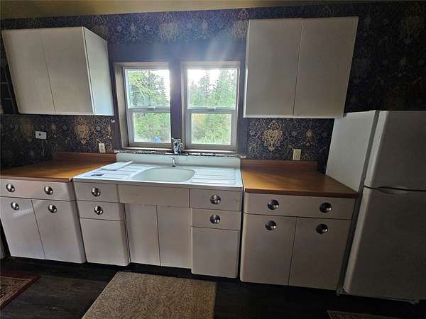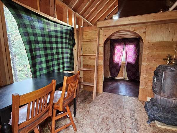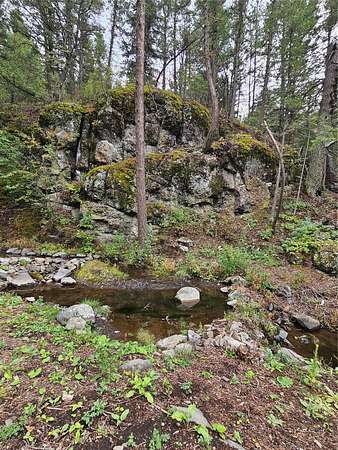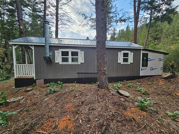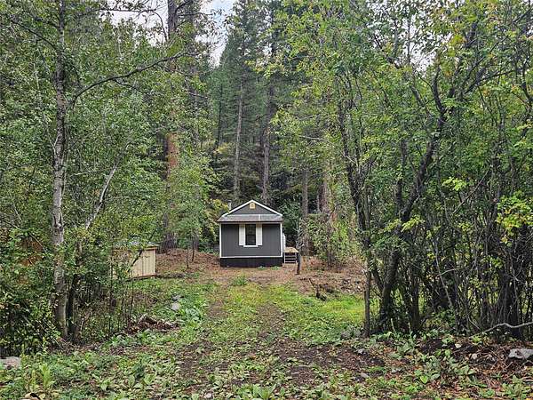 There are places so rare they feel touched by something otherworldly, and this is one of them. Sixteen acres of enchanted ground unfold here, where Sawmill Creek sings its eternal song across more than a thousand feet of frontage. The water winds past moss-draped rock outcroppings that seem to belong in a fairytale, while ancient ponderosa pines rise like sentinels along the hillside. A trail leads upward to the crown of the mountain, where the view stretches from Rogers Pass to the Sleeping Giant, a panorama so vast and unbroken it feels like standing at the edge of a dream. The land itself has been shaped with reverence-clearings made with care, rockwork set with pride, every detail in quiet harmony with the wilderness that surrounds it. This was once part of Gary Coopers Family Ranch.! The cabin is a dwelling of both warmth and wonder, where rustic necessity meets vintage grace. A wood stove glows in the heart of the room, while propane heat and refrigerator provide off-grid ease. Inside, a clawfoot tub promises simple luxury, a charming vanity and vintage-inspired fixtures catch the light, and the enameled metal cabinets in the kitchen anchor the space with timeless character. Up on the hillside rests an unfinished guest cabin with a loft, a story waiting to be completed, while a second leveled site offers room for another vision to take form. Near the main home, a small cabin stands ready for storage or retreat. Small trout in the creek. The large river pictured is not on the property but on the way to the property. Reached year-round along a gravel road, this off-grid sanctuary is not simply land, but a rare gift. It is a place where silence feels alive, where the air itself carries a kind of magic, and where living close to the earth becomes something more than survival-it becomes magical.