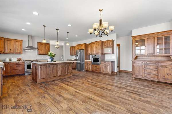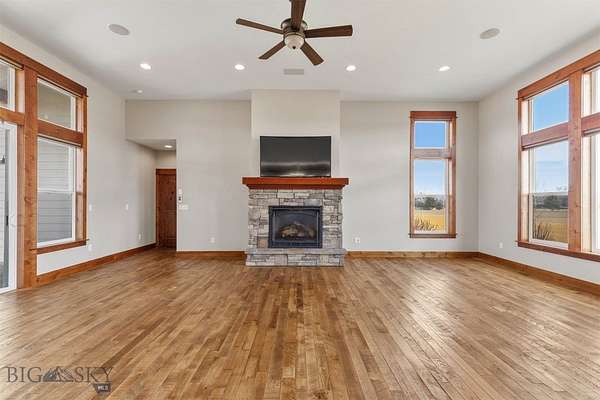 Welcome to 285 Waterfowl Way, a stunning custom-built home offered to the market for the very first time. This exceptional property sits on 10 breathtaking acres and captures incredible panoramic mountain views. Montana rustic charm meets classic tradition in this thoughtfully designed home, which showcases beautiful neutral finishes and timeless craftsmanship. The main living area is an entertainer's dream, centered around a spacious kitchen with a large island, abundant cabinetry, and generous prep space. Soaring windows frame the surrounding mountain vistas, filling the home with natural light, while a cozy gas fireplace anchors the living room and creates a warm gathering space. Beautiful wood floors serve as a classic tribute to Montana living. Designed with single-level living and accessibility in mind, the home offers wide halls and doorways. The spacious and private primary suite includes a luxurious bathroom, complete with a relaxing soaker tub, large tiled walk in shower, heated tile flooring and abundant closet. Three additional guest bedrooms and two more bathrooms on the main level provide plenty of space for family and visitors. An additional highlight of the home is the versatile bonus space, complete with its own guest bathroom and convenient kitchenette. This flexible area offers endless possibilities-perfect for a home gym, media room, hobby studio, or comfortable space for multigenerational living or extended guests. Thoughtfully designed to function independently from the main living areas, it provides both privacy and convenience while adding exceptional functionality to the home. The oversized three-car garage offers ample room for vehicles, recreational gear, and all of your Montana toys. Outside, the property is beautifully landscaped with berms, raised garden beds and plenty of open space to enjoy the peaceful surroundings. Horse lovers will appreciate that Cameron Bridge Estates allows up to two horses per property. Outdoor enthusiasts will love the access to the nearby Gallatin River, renowned for its blue-ribbon fishing, as well as state land located directly across the street. This rare offering blends privacy, acreage, breathtaking views, and thoughtful design-creating the perfect Montana retreat just a short drive from Bozeman, Big Sky and the airport.