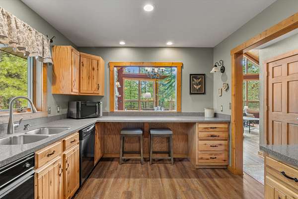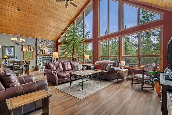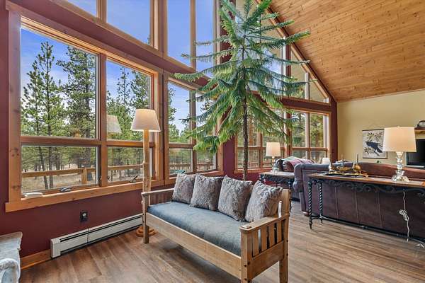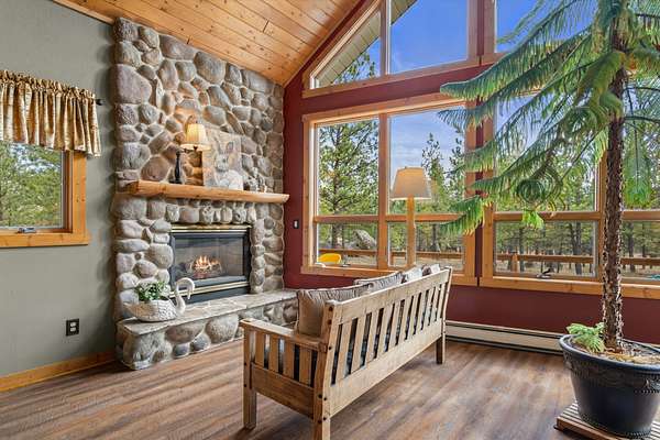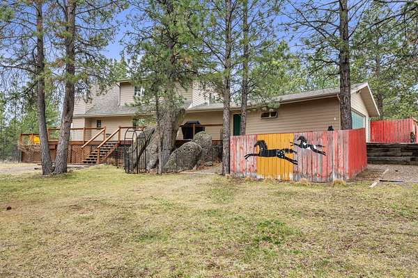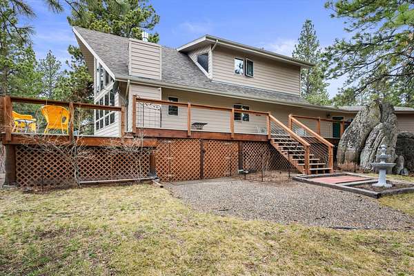This quintessential Montana property is located on 10+ beautifully treed acres with gorgeous boulder outcroppings. Designed to maximize both views and privacy, the home showcases a two-story great room filled with expansive windows that bring in plenty of natural light. The west side features an expansive perennial and pollinator garden creating a tranquil oasis to enjoy while sitting on the covered deck. The residence includes two ensuite bedrooms-one located on the main floor and another upstairs in the loft, which features its own sitting room/library. The open and airy layout is complemented by a gas fireplace. The wraparound deck on three sides is perfect for appreciating the sights and sounds of nature. The property has been well maintained throughout and offers space to expand with an unfinished basement. There is ample extra storage available in the tall crawl space and the convenient outdoor shed. Recent upgrades include a newer roof, newer boiler, updated appliances, fresh interior paint, improved flooring, and more. Some photos show the beautiful garden in previous spring and summer months.
