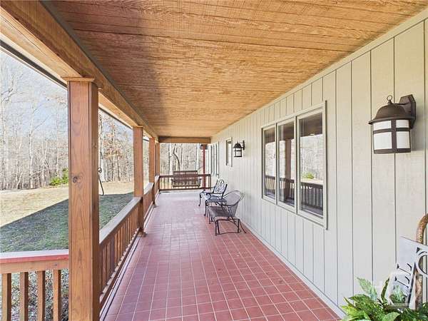 Welcome to 2850 Elder Mill Road, a rare Oconee County property offering exceptional privacy, versatile living spaces, and peaceful country surroundings just minutes from town. Consisting of two parcels-a one-acre homesite and an adjoining 13-acre tract-this 14-acre property provides a unique opportunity to enjoy space, flexibility, and natural beauty in a highly desirable location. The property features a main residence, guest house, and equipment shed, along with three total garage spaces, including two at the main home and one at the guest house. A spacious garden area enhances the outdoor setting, while the majority of the acreage is wooded with mature hardwoods, creating a serene and private landscape. Inside the main home, a welcoming foyer connects the sitting room and living room, which flows seamlessly into the kitchen and dining area. The main level includes the primary suite and an additional bedroom, complemented by two bonus/flex rooms offering excellent adaptability for a home office, hobbies, or additional living space. A large wraparound porch spans much of the home, with both screened and open sections ideal for relaxing and enjoying the natural surroundings. The finished basement level adds further versatility, featuring a bedroom, full bathroom, office, and comfortable living area. Two separate exterior entrances provide added convenience and privacy. The guest house offers additional living space with a large downstairs area already wired and plumbed for a kitchen. Upstairs, two bedrooms and a full bathroom complete the layout. With its combination of acreage, multiple living structures, and tranquil wooded setting, 2850 Elder Mill Road represents country living at its finest. Total bedroom, bathroom, and square footage figures reflect the combined main house and guest house