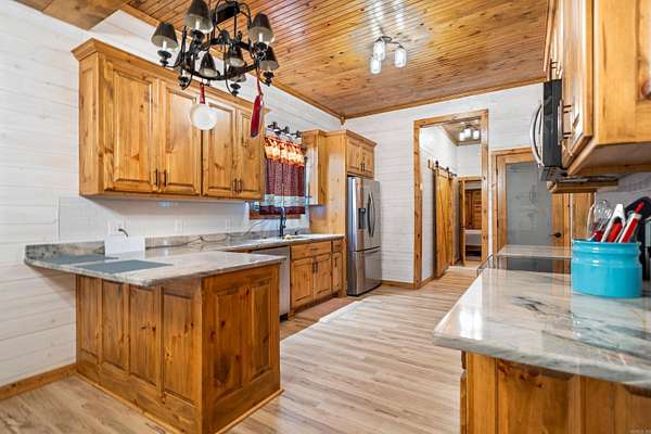 This beautiful custom 4 bed 3 bath home is nestled on 5 beautiful acres & the ideal set up for 2 primary suites! This home has a sprawling 2640 sqft & you will notice the craftsmanship of each custom ceiling upon entering each room. Custom cabinets with astonishing quartzite countertops throughout the home. The main bath has a jacuzzi tub surrounded by quartzite. This home comes with 120 sq ft storm shelter, a chicken coop designed for specific birds, a K-9 kennel with a 12 X 80 fenced run, a 500+ sq ft deck. This peaceful country living is just minutes away from Mt. Ida and five minutes away from the Ouachita River. Dragover is well known for being the only part of the river that loops around, so you can enjoy not only floating the river, but being able to walk a few minutes back to your vehicle after a 3 hour float trip. If fishing is your dream- this home is located within 6 miles from the HWY 27 Fishing Village along with the state boat ramp to Lake Ouachita. Montgomery County is the crystal capital of the world! If you love digging crystals or want to take your chances digging for diamonds then you are just 45 minutes away from the only diamond mine in the U.S. * add acreage