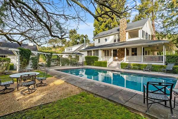 Set along Silverado Trail with convenient access to downtown St. Helena, this approximately 18 acre Napa Valley estate offers privacy, space, and flexibility for a luxury vacation or extended seasonal stay. The renovated farmhouse-style main residence includes 3 bedrooms and 3 bathrooms, with generous living areas and a wraparound porch that speaks to the property's classic wine country character. Interiors blend traditional architectural elements with thoughtful updates, creating an environment that feels both grounded and comfortable. A detached one-bedroom guest house with a dedicated laundry is positioned beside the pool, offering separation and privacy for additional guests or staff. The surrounding lawn and outdoor living areas provide a natural setting for quiet afternoons or relaxed gatherings. A substantial barn adds meaningful versatility, suitable for meetings, retreats, or private events (tenant to verify permitted uses). Ample on-site parking supports larger groups without compromising the estate's sense of calm. This is a rare lease opportunity offering scale, discretion, and proximity in the heart of Napa Valley.