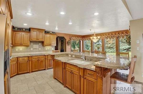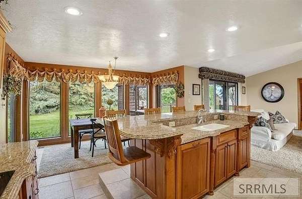 Solid Brick Home on 2.2 Acres - Quiet Country Living with Custom Features! Enjoy the quality of solid brick construction on 2.2 secluded acres surrounded by mature trees for privacy and shelter. Relax outdoors on the spacious deck overlooking a tranquil fountain pond, cozy fire pit, and hot tub-perfect for entertaining or peaceful evenings under the stars. Inside, the custom kitchen features cherry wood cabinets, granite countertops, tile backsplash, and granite inlay flooring. The open dining area and island seating create a warm, inviting space. The main level includes living and family rooms, a primary suite with walk-in closet, soaking tub, and separate shower, plus a craft room and custom office-both easily convertible to bedrooms. The finished basement adds a large family room, three bedrooms, full bath, and storage. Additional highlights: new roof, double water heaters, custom blinds, central vacuum, and a fully finished, insulated garage.