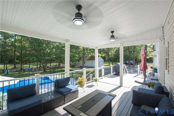 Don't miss your opportunity to own this beautifully maintained 5-bedroom, 3.5-bath retreat set on 6 private acres in Prince George, just minutes from I-95 and I-295. The main level features a spacious living room with a cozy gas fireplace, an open-concept kitchen and dining area, as well as a convenient first-floor bedroom and laundry room. A highlight of the home is the fully equipped in-law suite, complete with its own bedroom, kitchen, living area, and half bath, with access to the main house through both the dining room and a full bathroom -perfect for extended family or guests. Upstairs, you'll find the primary suite with an ensuite bath and walk-in closet, along with two additional bedrooms and a full bath, offering plenty of flexibility for family living or home office space. Outdoor living truly shines here. Relax on the expansive, recently built Trex deck -partially covered and outfitted with two ceiling fans - ideal for entertaining during warmer months. Just steps away is the in-ground saltwater pool, creating your own private oasis. The surrounding property is thoughtfully maintained with open green space and a fire pit, perfect for gatherings and outdoor enjoyment. Car enthusiasts or those needing extra storage will appreciate the two oversized two-car garages - one attached and one detached -providing four covered parking spaces plus ample room for guests. Over the past seven years, numerous updates have been completed, including a new roof, granite countertops and tile backsplashes in both kitchens, refinished hardwood floors, LifeProof vinyl flooring, new carpet, pool liner, salt chlorinator, fencing, composite deck, crawlspace encapsulation, and new kitchen sinks. This exceptional property offers the perfect blend of comfort, privacy, and modern upgrades - come see it for yourself!