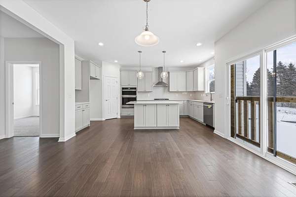 Recently completed new construction with New Year occupancy! Ideal Scenic 2.24 acre parcel offers scenic wrap around pond views and Western front elevation. Interior features include a great room that opens to the kitchen and eat-in nook, study, mud room with a walk-in closet, laundry room, primary suite with a private full bath and walk-in closet, and two secondary bedrooms with a jack-and-jill bath and walk-in closets.Everything you need on one level. Cathedral ceilings accent the great room and a cozy fireplace is a perfect spot to finish your favorite book. The great room opens in to the Chef's inspired kitchen with light coming in from all angles and featuring 42' upper cabinetry, quartz countertops, hardwood floors with a large central island. 3 car side entry garage, concrete driveway, full basement with bath prep. SEV and taxes currently set for vacant land. Sidewalk, porch cap and finish grade completed in Spring/Summer.