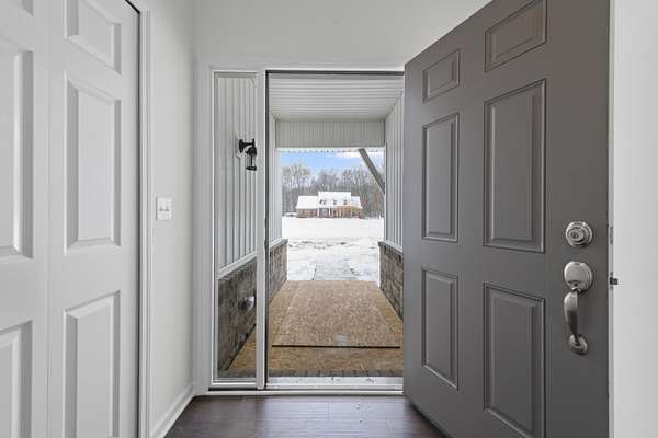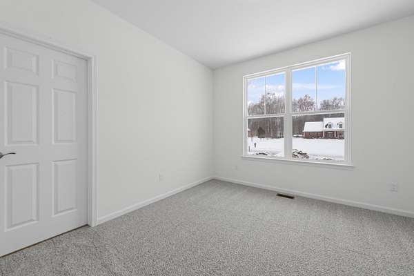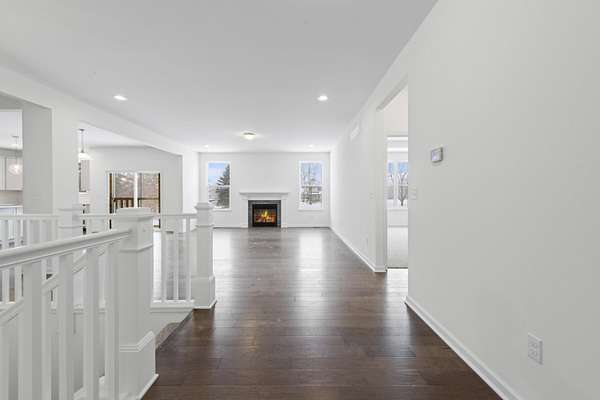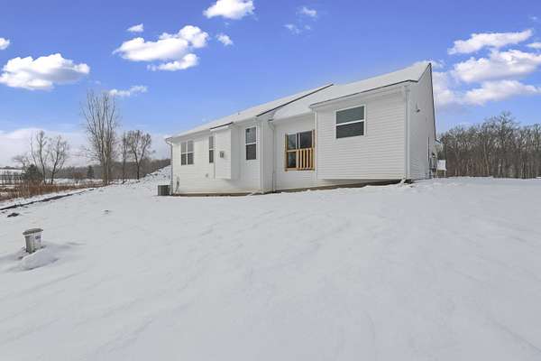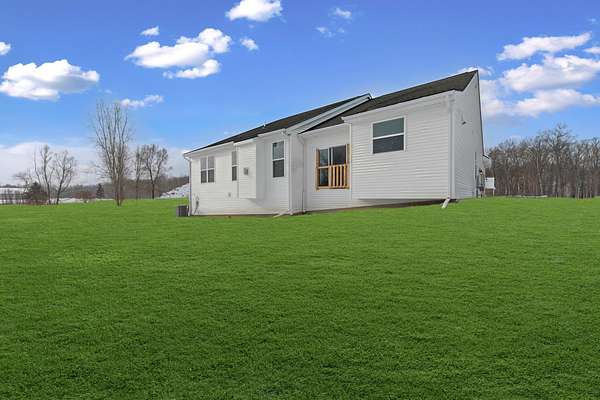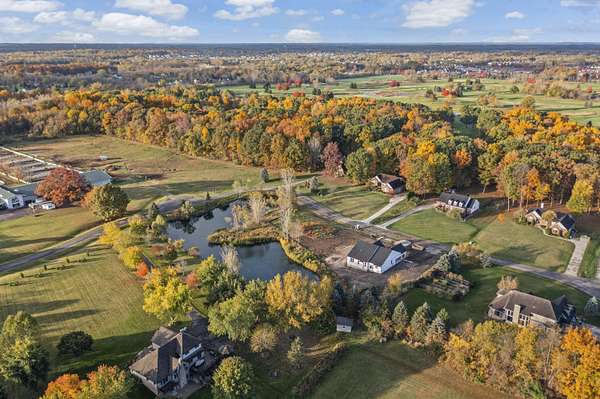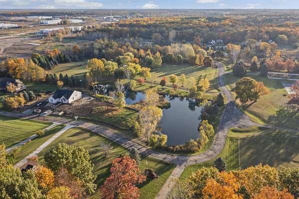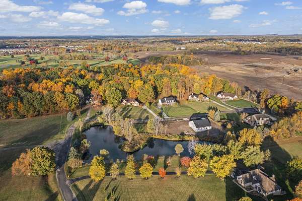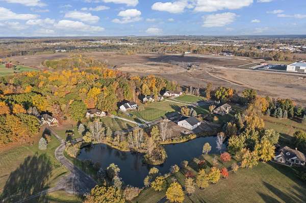 Four Seasons of Scenic Views on 2.24 Acres | Move-In Ready New Construction Enjoy year-round views from this beautifully set 2.24-acre parcel featuring wraparound pond views, rolling terrain, and western exposure. An open, thoughtfully designed layout connects the great rm, kitchen, and dining nook--ideal for both everyday living and entertaining. The main level also includes a private study, mudroom with walk-in closet, and convenient laundry rm. Spacious primary suite boasting a private full bath and walk-in closet. Two additional bdrms share a Jack-and-Jill bath, each with walk-in closets. Great rm is highlighted by cathedral ceilings & a cozy fireplace. The kitchen features shaker-style cabinetry, 42' upper cabinets, quartz counters, hardwood floors, and a large central island. Additional highlights inc a 3-car side-entry garage, concrete driveway, & a full basement w/ bath prep. Builder warranty in place through December 2026. walkway, final grade & porch cap due in Late Spring.