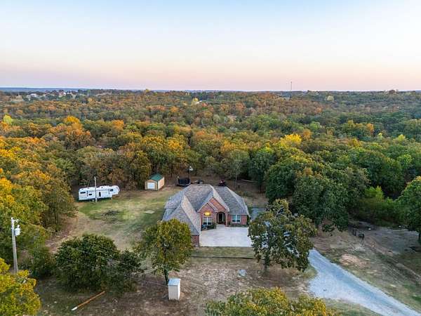 PRICE REDUCED!! Tucked away on +-5 peaceful acres in Creek County, this stunning 4-bedroom, 3.5-bath home offers the perfect blend of space, comfort, and country living! The +-2,600 sq. ft. home is beautifully designed with an open-concept living room and kitchen, ideal for family gatherings or entertaining. The kitchen and entryway feature tile flooring, while the bedrooms and living areas include soft carpeting for added comfort. The kitchen showcases elegant wooden cabinetry, granite countertops, and plenty of space for cooking and hosting. At the front of the home, a formal dining area welcomes guests, and the master suite features a luxurious jacuzzi tub for relaxation. Upstairs, you'll find a spacious bedroom, a full bath, and additional attic storage space. Outside, a covered back porch provides the perfect spot for grilling or unwinding while enjoying the peaceful scenery. The property includes an attached two-car garage, a sturdy equipment shed, and an in-ground storm cellar for safety. A portion of the acreage is fenced and features a pond stocked with bass, as well as a horse shed--making it ready for a few horses or other livestock. This property is also equipped with a hardwired security system, offering peace of mind. Located just +-14 minutes from Bristow, +-25 minutes from Tulsa, and about 1 hour and +-17 minutes from Oklahoma City, it combines country living with easy access to city conveniences. Secluded, well-maintained, and thoughtfully designed, this property offers the perfect family home in a peaceful country setting--with all the space, beauty, and functionality you could want! All showings are by appointment only. If you would like more information or to schedule a private viewing, please contact Hunter Bellis at (539) 238-7693 .