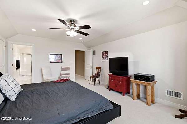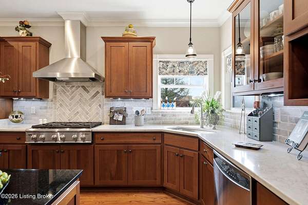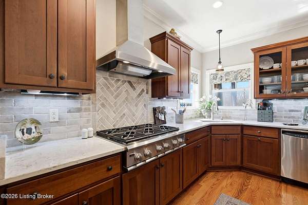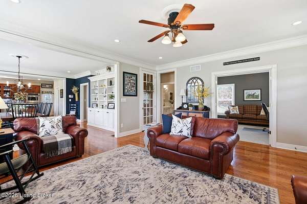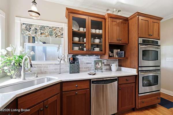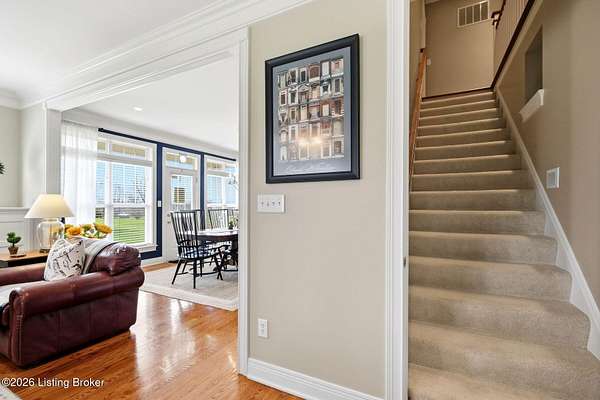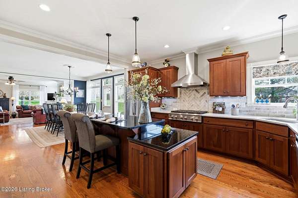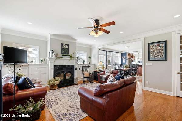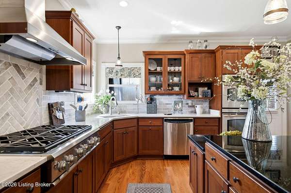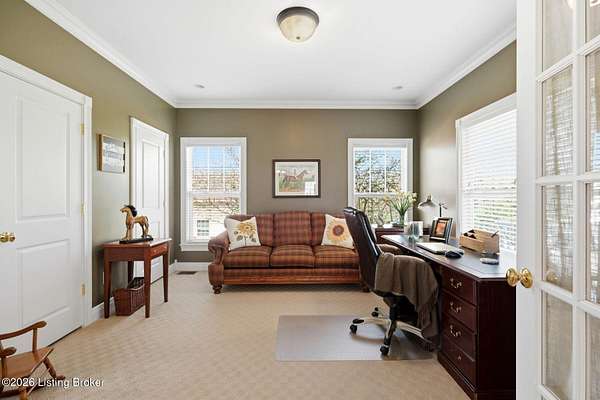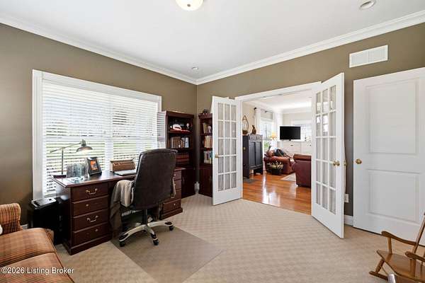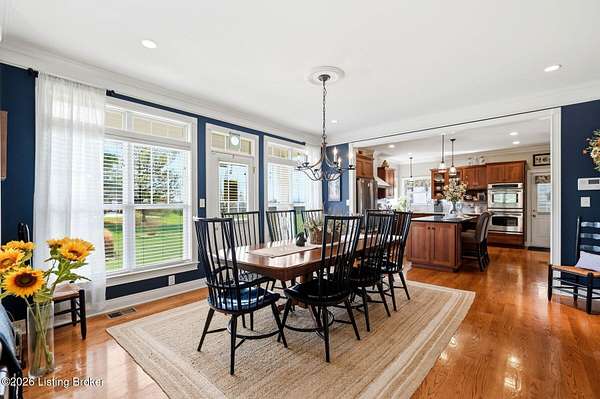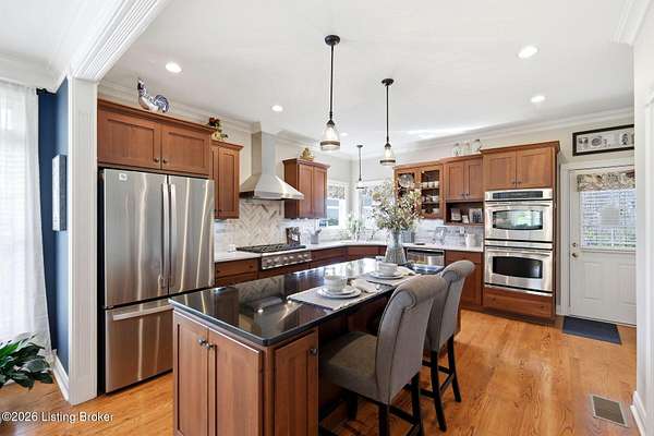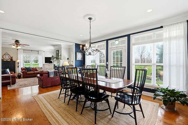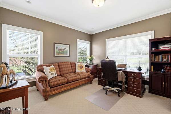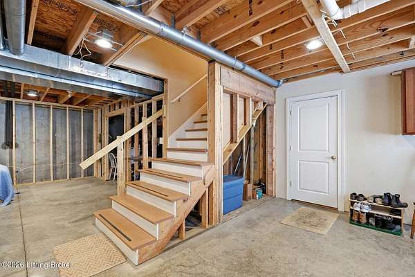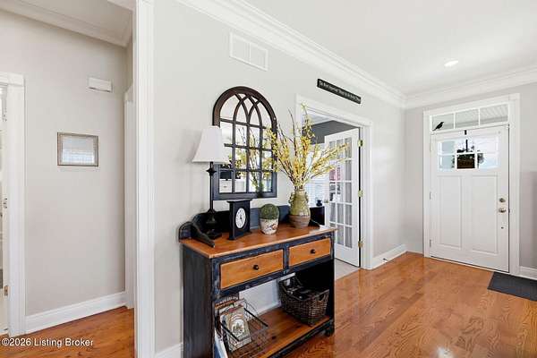 Energy-efficient custom-built home on 5 scenic acres in Shelbyville, KY, offering the perfect blend of privacy, comfort, and countryside charm. Enjoy a picturesque drive along Hebron Road surrounded by rolling green pastures and horse farms as you arrive at this exceptional property. Designed with both functionality and style in mind, this home features an open floor plan with a desirable first-floor primary suite and laundry. The main level boasts 10 foot ceilings and includes a spacious great room, formal dining room, well-appointed kitchen, an additional bedroom currently used as an office, and a second full bathroom. Beautiful plank hardwood flooring flows throughout the living, dining, and kitchen areas. The kitchen is a chef's dream with a large island, granite countertops, Barber cabinetry, stone backsplash, and top-of-the-line GE Profile appliances, including double wall ovens and a 6-burner gas stove. The great room showcases custom built-ins flanking a Vermont Castings wood-burning fireplace, creating a warm and inviting space. The dining room, measuring 15x16, features its own custom built-ins and elegant two-piece crown molding. Upstairs, you'll find a spacious bedroom with a private en-suite full bathroom-ideal as a second primary suite or guest retreat. Additional highlights include a WaterFurnace geothermal HVAC system for superior energy efficiency, Alcoa Structure insulated siding for low-maintenance living, and an attached 2-car garage. The basement is already framed and ready for your finishing touches. Outdoor living is just as impressive with a screened-in porch overlooking the backyard, a fenced-in garden, a 34x10 covered front porch, and a 30x50 pole barn built in 2012-perfect for storage, cars, or hobbies. A rare opportunity to own a thoughtfully designed home with modern efficiency in a peaceful, rural setting.