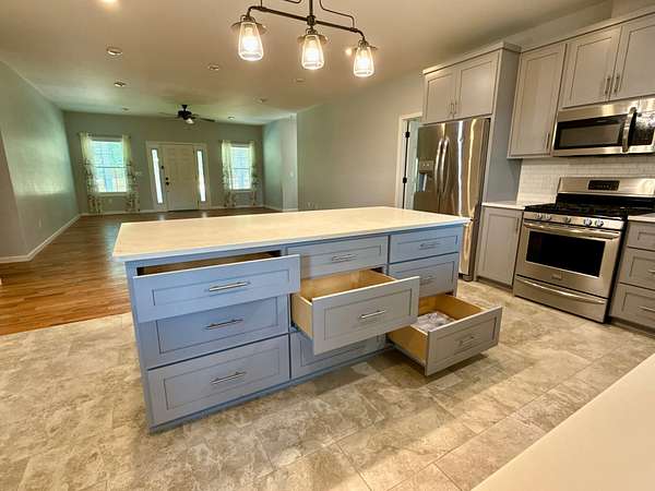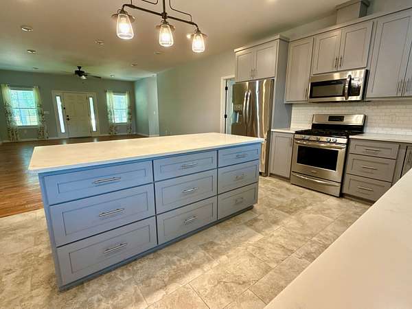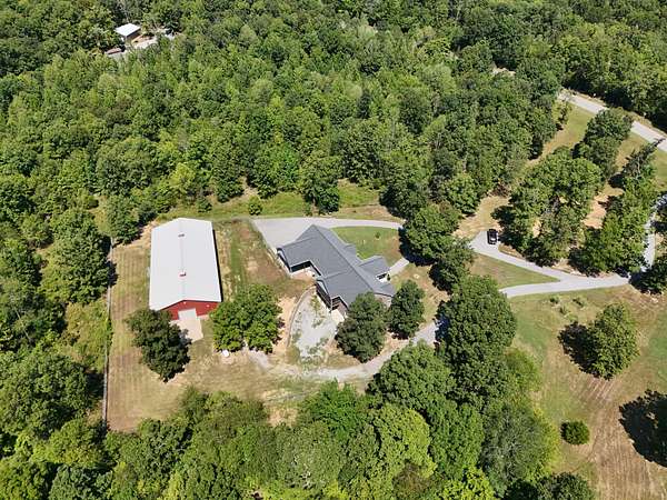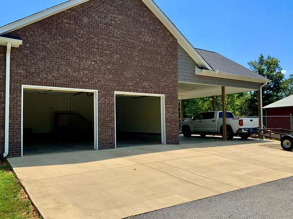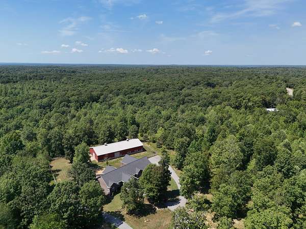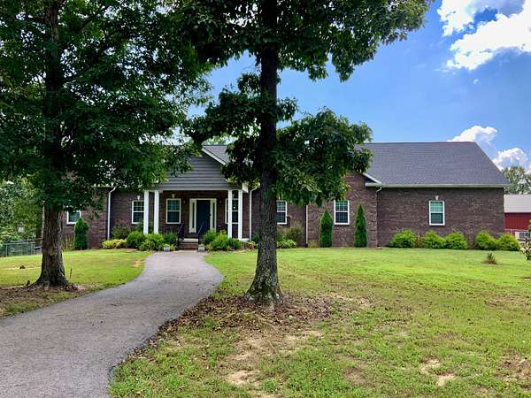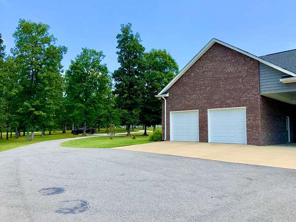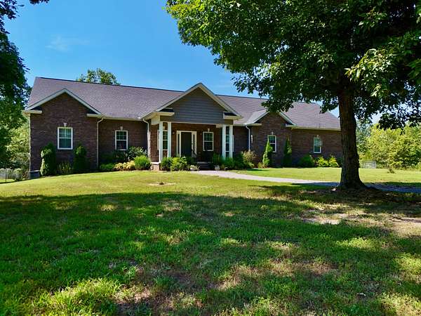 This all brick, custom-built estate offering the perfect balance of country privacy and modern convenience. Situated on nearly 5 acres, this 3,436 sq. ft. home was built in 2020 with quality craftsmanship and energy efficiency in mind. Step inside to an inviting open floor plan filled with natural light, Tennessee red oak hardwood floors, and tile flooring. The chef's kitchen features quartz countertops, stainless steel appliances, a gas range, and an oversized 16x9 walk-in pantry/laundry combo. The main level offers three spacious bedrooms, an office or optional fourth bedroom, and a formal dining room that can easily serve as a fifth bedroom. A partially finished basement adds extra living and entertaining space. Outdoors, enjoy a screened porch overlooking the peaceful setting, along with a remarkable 5,250 sq. ft. Morton building shop, multiple garages, and ample covered parking, all power transmission lines are under ground. This property was thoughtfully designed for comfort and efficiency with 2x6 construction, foam insulation, handicap-accessible 36inch doors, tankless water heater, upgraded HVAC, Generac generator, and ML Connect fiber internet. Conveniently located just 10 minutes to I-40, this home offers an easy drive of about one hour to Nashville, making it ideal for commuting or city access. Recreational opportunities abound with Kentucky Lake only 30 minutes away, providing some of the best boating, fishing, and water activities in Middle Tennessee. This is more than a home--it's a private retreat designed for both everyday living and entertaining.
