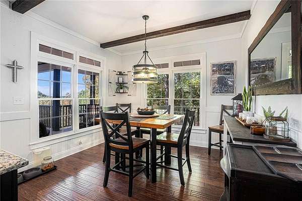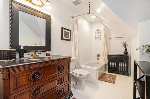 This thoughtfully updated residence blends modern finishes with timeless charm. Inside, you'll find an upgraded kitchen and bathrooms, rich hardwood floors, and soaring high ceilings that enhance the open, airy feel throughout.
