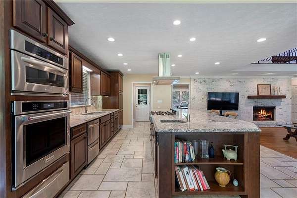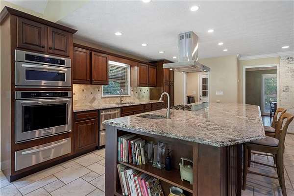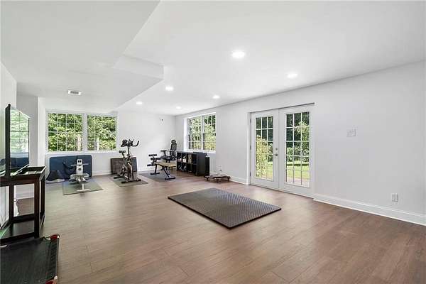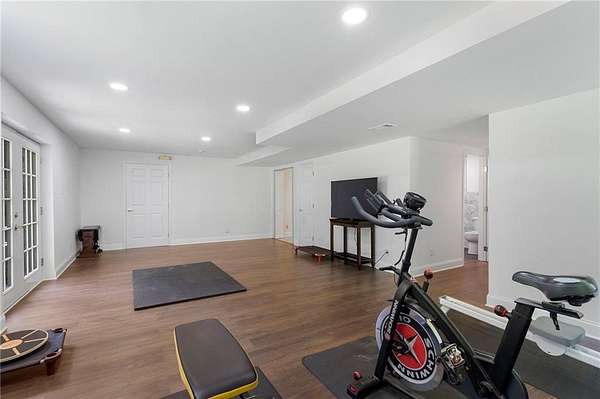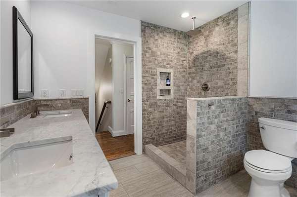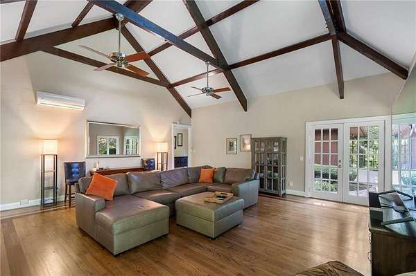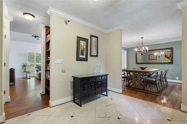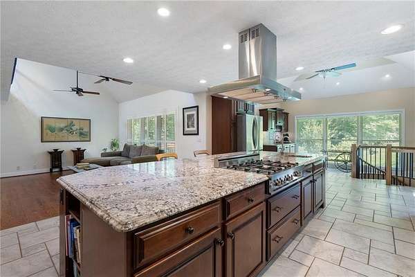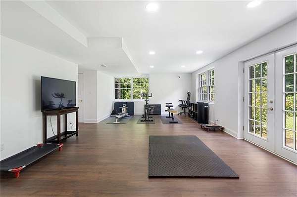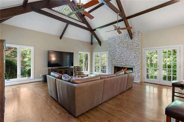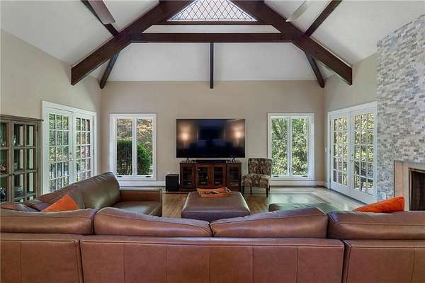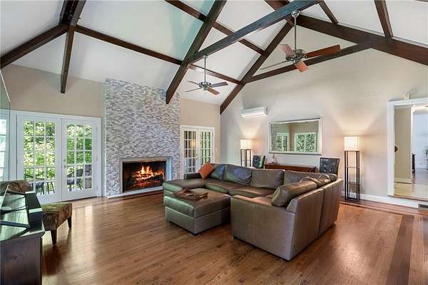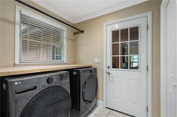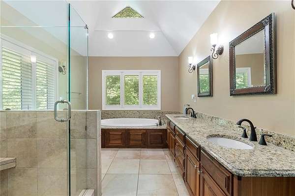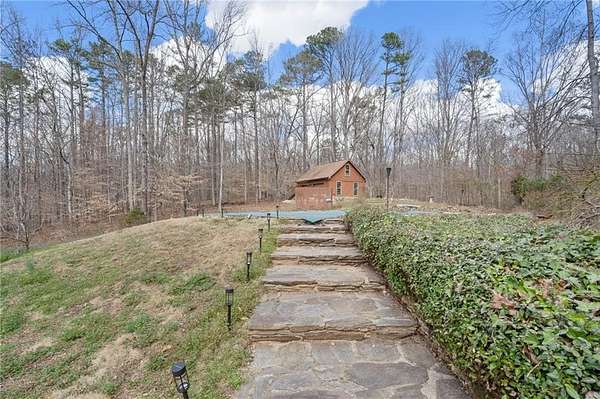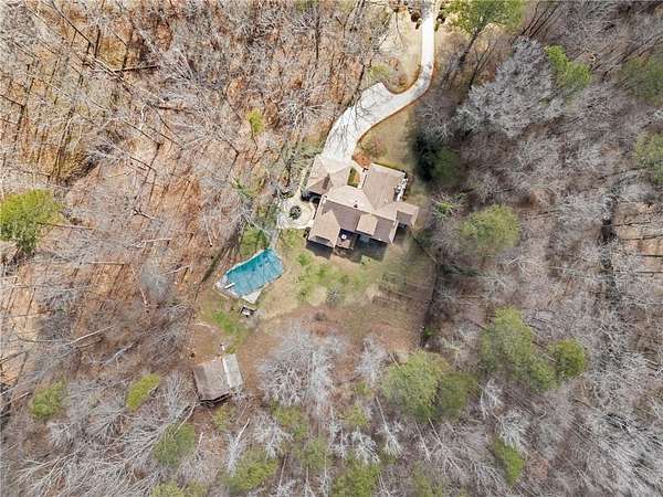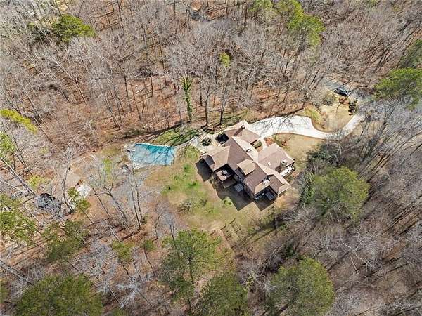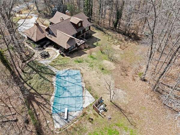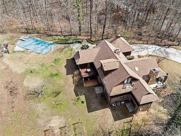 Discover your private sanctuary in Douglasville's best-kept secret, Valli-Hi Estates. This custom-built 4 bedroom and 4 bathroom traditional home provides beautifully appointed living space. Step inside to a stunning great room featuring vaulted, beamed ceilings, oversized windows to let in the sunlight, rich hardwood floors, and one of two cozy fireplaces. Formal dining area flows into the open concept, cozy family room overlooking the gourmet kitchen with an abundance of storage with soft close drawers- centered around a spectacular 12-foot granite island and equipped with a professional gas cooktop, stainless steel appliances, a coffee bar, and a wine bar. The huge primary bedroom and spa-like en suite bath with double vanity granite counters, custom tiled shower, and separate granite surrounded soaking tub are conveniently located on the main floor. A second versatile bedroom and full bath on this level provides the perfect space for guests, a home office, or multi-generational living. Upstairs, discover two oversized bedrooms and a breathtaking, custom-tiled bathroom also with double vanity granite counters, stand alone soaking tub, and tiled shower. Venture down the unique spiral staircase to the finished daylight basement with yet another custom tiled bathroom with soaking tub. This bright, open space, with direct access to the grounds (and pool), is your blank canvas for a home gym, media room, or the ultimate poolside lounge. Your outdoor paradise awaits. Find tranquility in the stone courtyard with its classic fountain, relax on the balconies overlooking the grounds, or utilize the large workshop for your hobbies. This home seamlessly blends refined interior details with magnificent natural surroundings. Tucked away on FOUR secluded acres complete with blueberry bushes, muscodine vines, and two spring-fed creeks, this property offers serene country living while being just 30 minutes from Hartsfield-Jackson Airport and 22 miles from downtown Atlanta.