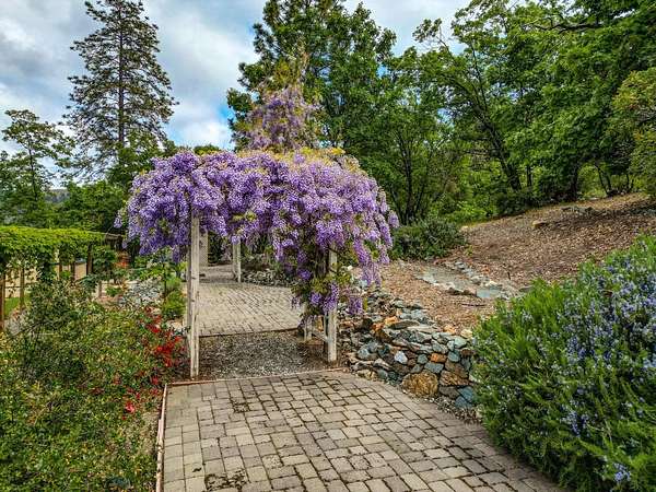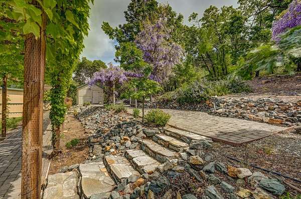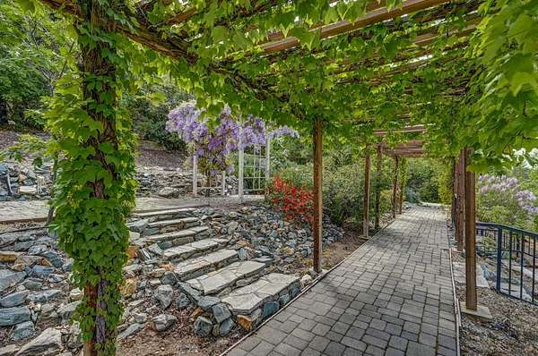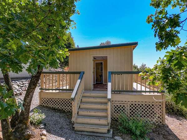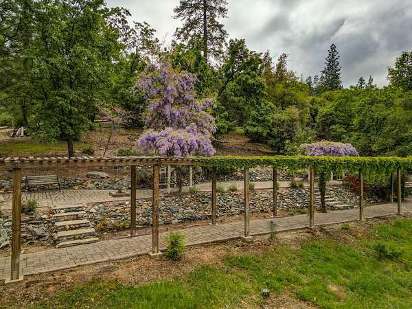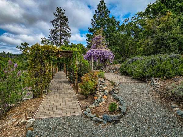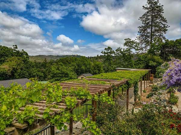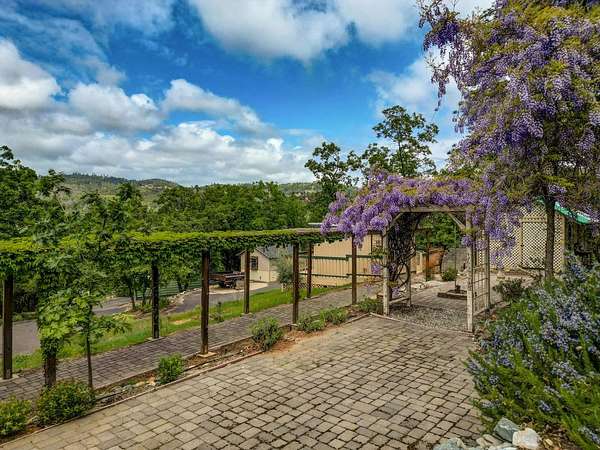 Gold Country Gem in Historic Murphys. Welcome to California's historic Gold Country where rolling foothills, storybook vineyards, and the charming town of Murphys invite you to slow down and savor life. Just six minutes from downtown, this 5.14-acre Penn Gulch estate. Sweeping mountain views from inside and outside the home. Impressive 30'x 61' I-beam shop is a dream come true for the car enthusiast, craftsman, or collector fully insulated, heated, and cooled, with space for six or more vehicles plus workshop space. Beyond the main residence, the property features a private Guest unit with a charming wraparound deck, perfect for visiting family, guests, or generating rental income. A second detached unit makes an ideal home office or hobby studio, while another currently used for storage could easily transform into an art studio, workshop, or second office. An additional outbuilding offers the perfect setup for a tack room, garden shed, or feed storage every creative or practical need has a home here. Follow enchanting garden pathways lined with flowing wisteria vines, grape arbors, and lush landscaping. As you wander, you'll discover hidden sitting areas tucked among the trees peaceful spots to sip morning coffee, watch the wildlife, Enjoy the views, or simply breathe in the serenity of the hills. The Main house is a single-level 3-bedroom, 2-bath home (1,808 sq. ft.) offers an open, light-filled layout with tile floors, crown molding, central HVAC, and a cozy wood stove for cool evenings. Enjoy fabulous views from every room in the house. You will love the year around sun room, enjoy watching the 4 seasons from this lovely room. The country Kitchen offers a great floor plan and views to your back garden area. The large family room offers breath taking views, built in cabintery and a cozy wood stove to enjoy those colder evenings. The attached 2-car garage adds everyday convenience, and there's also a separate one-car garage with plenty of room for a tractor or extra storage. The acreage is cross-fenced and horse-friendly, ideal for a small hobby farm, gardens, or animal sanctuary. There's plenty of room to roam, plant, or play under the wide country sky. Designed for both beauty and practicality, the estate includes a backup generator, paved circular driveway, and RV parking. Every inch of this property has been thoughtfully planned for comfort, creativity, and connection to nature. There is also a 250 Gallon holding tank and fire hose. Whether you're drawn by the fresh air, the local wineries and music of downtown Murphys, or the tranquility of your own Country haven, this is more than a home. It's an invitation to live fully. It's Gold Country living at its finest. This home is a true sanctuary a daily reminder that life here moves to a gentler rhythm.