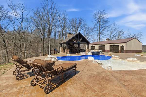 Escape to your private paradise on 10+ breathtaking acres, where luxury meets tranquility in this exceptionally crafted estate. A meandering concrete drive leads through mature trees and past your private pond before opening to reveal this stunning all-brick custom home. The solid iron doors welcome you into a thoughtfully designed main-level living layout featuring 4 bedrooms + private study. The chef’s kitchen is equipped with a new Wolf range and opens to warm, inviting living spaces accented by wood beams, gold leaf detailing, Brazilian teak hardwoods, and copper sinks—each element curated for a one-of-a-kind finish. The primary suite offers a true retreat w/ a copper soaking tub, oversized walk-in shower & expansive walk-in closet. Upstairs, enjoy a spacious bonus room, walk-in attic, and a hidden safe room discreetly tucked behind the bookshelf. This home includes smart automation lighting, whole-home generator, & a full water filtration and softener system. Car enthusiasts will appreciate the attached 3-car garage w/ Racedeck flooring and an impressive 3-car detached, climate-controlled shop complete with a private office/ gym. Outdoors, indulge in your own resort-style oasis featuring a heated saltwater pool w/ a beach ledge, a covered pavilion with an outdoor kitchen, and a fireplace—perfect for entertaining or unwinding in total privacy. All of this, just minutes from the heart of Hendersonville and a short drive to downtown Nashville. Inquire for full list of upgrades and features. 1% lender credit with use of preferred lender. Interior photos to come
