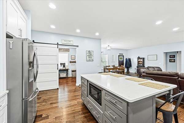 Experience the perfect blend of country living and modern convenience in this stunning full brick home set on over 5 acres of privacy. The huge open floor plan makes entertaining a breeze from the kitchen island to the covered deck. Mornings and evenings on the deck are peaceful and entertaining while watching the deer and other woodland animals pass through. The walkout basement is a private retreat ideal for guests, extended family or to let your imagination guide you to creating your own space. Car enthusiasts and hobbyists will love the oversized 2-car garage on the lower level plus an additional 2-car garage on the main. Surrounded by peaceful acreage, you'll enjoy the privacy and space of rural living while being just minutes from shopping, healthcare, and entertainment. This home combines lifestyle and location-whether you're hosting friends, relaxing or playing on your land with the convenience of town nearby, it truly offers the best of both worlds. (Septic permit for 3 bdrm)