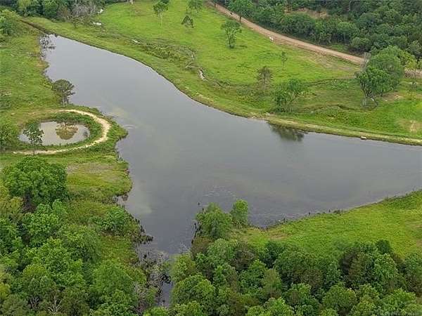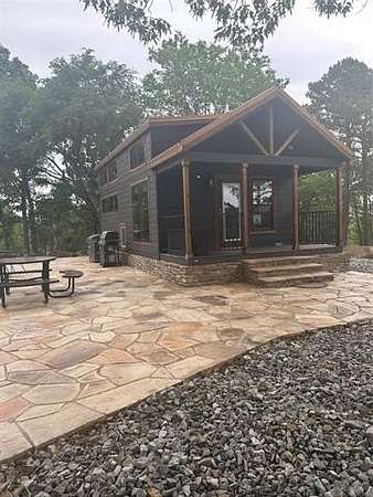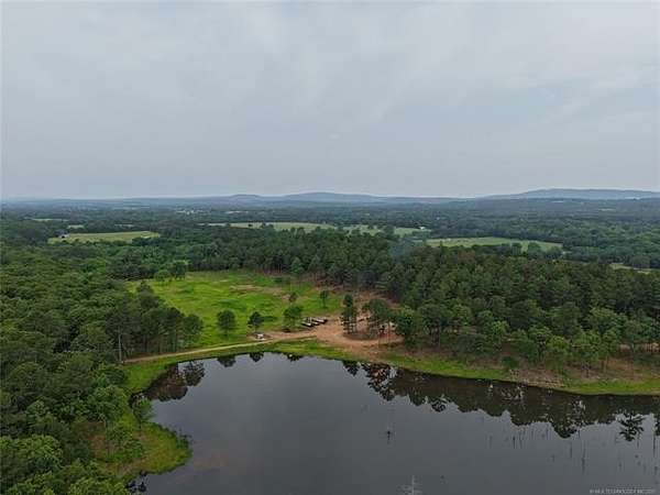 Outstanding property developed into an outstanding resort type property. Developed to totally enjoy the beauty of Southeast Oklahoma right on the north shores of Wister Lake! Two immaculate mini cabins just away from the main dwelling, all on the banks of a private 15-acre lake. Homestead, VRBO, fishing, hunting, hiking, ATV/UTV, horseback, you name, this place has it! Beautiful dwelling TOTALLY remodeled in top quality fashion. Three BR, three bath, fireplace, carport and completely refinished from top to bottom. And I again state, top-quality material and workmanship. From the new full glass windows going out to the deck overlooking the private lake, you are never without the beauty this property has to offer. Two mini cabins, adjoined by a rock patio with a firepit provide for the entertainment potential that never ceases. The mini cabins are not your average units, rather, these are top of the line. Also has a large Quonset style barn for equipment storage. Four gated entrances, two with automatic gate openers. New fencing along road, with painted pipe bracing, corners and rails. And lest forget about the chicken coop, with chickens! A very unique property. Improvements are outstanding! Borders State WMA and the hunting/fishing opportunities are just fantastic. The view from being nestled in the valley of the mountains-Ouachitas, Sugarloaf, Cavanal, East Sans Bois, especially from the southern ridge with a direct view of Wister Lake just to the south, is spectacular. For the ultimate homestead, VRBO or recreation property, the Buzzard Ridge Resort has taken it to the next level!