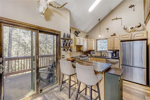 Escape to this beautifully customized mountain retreat set on 1.5 private acres surrounded by serene natural beauty. Two spacious decks overlook a peaceful setting along a well-traveled elk and deer trail, creating the perfect place to relax and take in the mountain atmosphere.