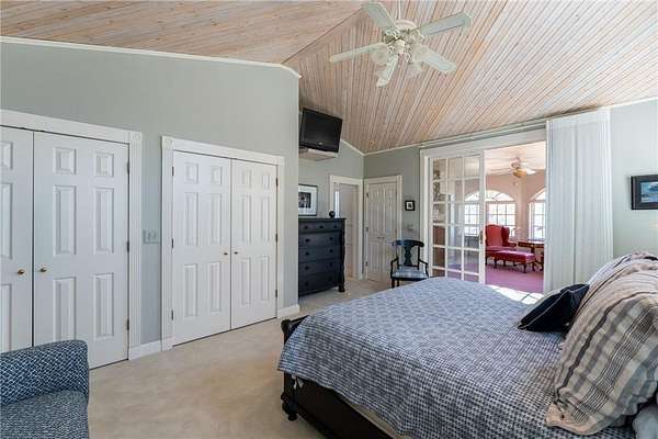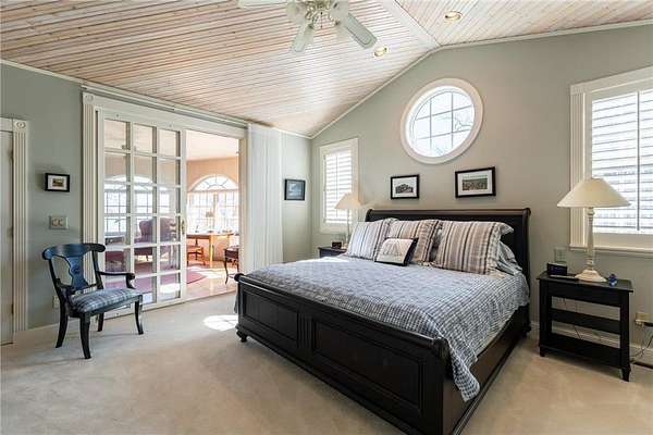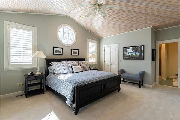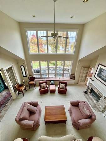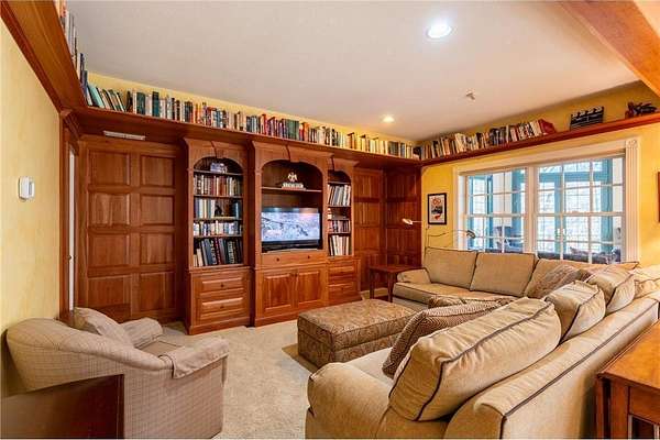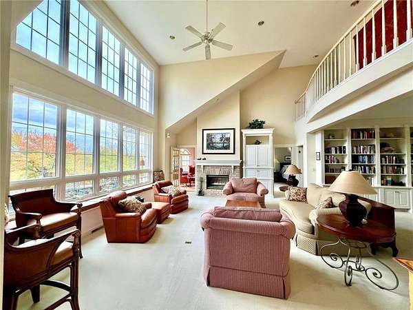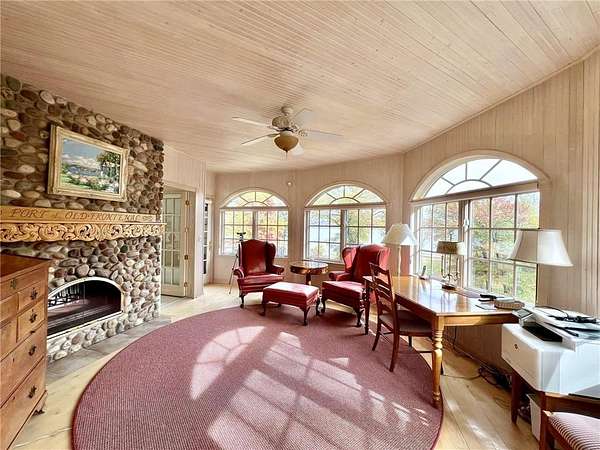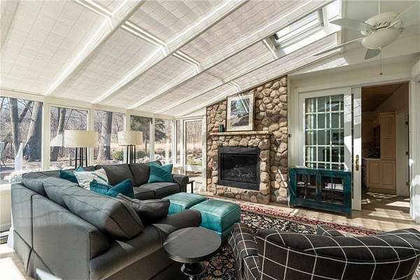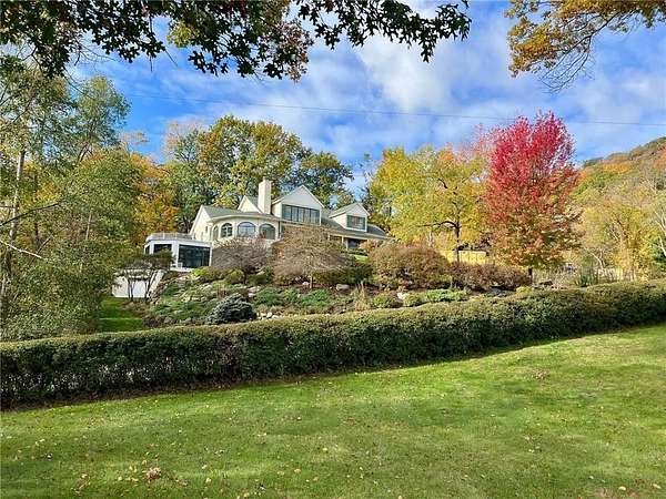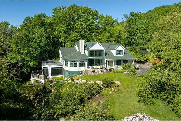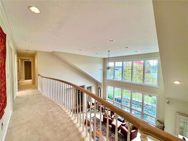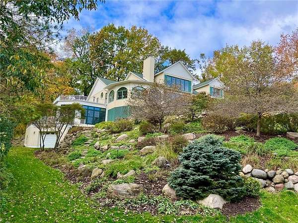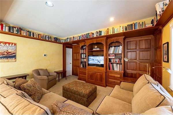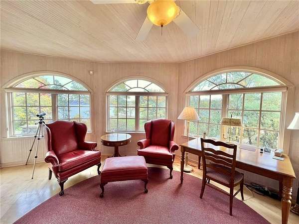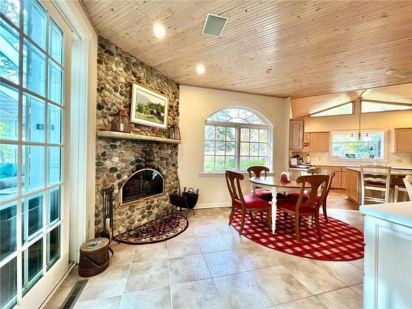 An amazing opportunity to own this 3.68-acre Old Frontenac estate with over 200 ft of sandy beach frontage on gorgeous Lake Pepin/Mississippi River. Enjoy fishing, swimming, boating, kayaking and more right out your front door. Your backyard is 2600 acre Frontenac State Park that includes 17 miles of hiking and cross country ski trails, camping and the highest bird species count of any park in the state. Custom designed 4 bedroom, 4 bath home with over 5200 sq. ft. of living space and panoramic river and bluff land views. Main level includes a vaulted living room with fireplace and floor to ceiling windows, a formal dining room, library, a sun-filled conservatory with in-floor heat, auto ceiling blinds and a gas fireplace, eat-in kitchen with center island/breakfast bar, informal dining with a wood burning fireplace and built in desk, primary bedroom suite with multiple closets and a full bath with hot tub, adjacent sun room/office with fireplace, 1/2 bath, foyer and mud room. Mudroom has space for future washer/dryer but hookups are not yet installed. Upper level includes 3 bedrooms and a 3/4 bath with tiled shower. In the lower level, you'll find family room/den with a beautiful built-in entertainment center, 3/4 bath, a billiards room with gas fireplace, laundry, storage, and utility room. Attached 2 car garage with a 3rd (tuck-under, insulated and heated) garage with plenty of space (504 sq. ft.) for additional toys and workshop. Front, rear and side stone patio areas and a dining deck. Private and wooded backyard with attractive landscaping, rock garden, fountain, and rock steps. Front yard is an expansive 3 acre lawn that rolls gently down to over 200 ft. of sandy beach shoreline with phenomenal views in all directions. You also have the privilege of watching an active bald eagle nest high in a tree close to the water. 1 hour to MSP; 40 minutes to Rochester. Surrounded by Frontenac State Park and Lake Pepin, Old Frontenac was founded in the 1850s and retains a gentle, peaceful ambience of the past. This property offers a quiet and private lifestyle in a charming, unique and historic community.