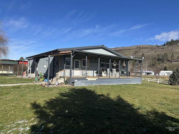 Just minutes outside of Stites sits this well cared for spacious manufactured home on over 5 flat useable acres. This 3 bdrm, 2 bath home features an open floor plan with lots of natural light, open kitchen, walk in pantry, mudroom and large utility room. The property features several outbuildings and shops. The large 87 x 33 shop with wood and oil heat, water and a sewing /storage room with separate entrance. A single car garage, a utility shed, 2 carports and a utility barn/shed complete the outbuildings. There are two large fenced orchard / garden spots, livestock pasture and kennel areas. There is also a 52 x 30 concrete foundation ready with power, water and its own septic system connected ready for you to build on. This end of the road property is just minutes from the South Fork of the clearwater river, this property is a must see, call for a showing today!