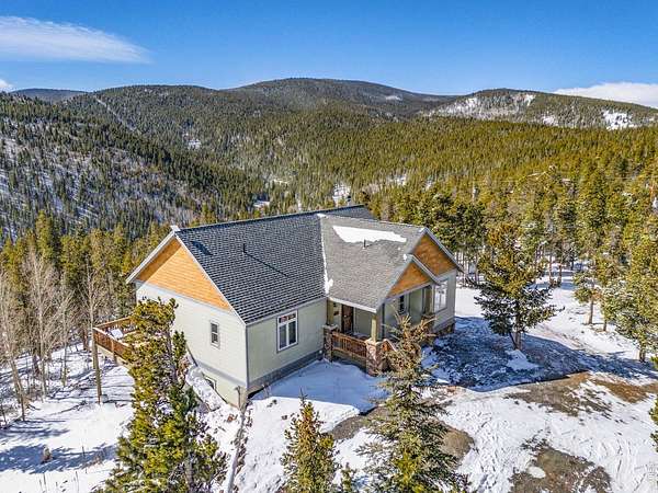 Perched atop a scenic mountain ridge near Rollinsville, CO, this exceptional custom home blends seclusion, craftsmanship and breathtaking beauty. Built in 2004, this mountain Craftsman captures sweeping panoramic views beneath brilliant blue skies, tucked away on a private road with unparalleled privacy and no visible neighbors. The fire-resistant exterior features composite plank siding complemented by striking stone pillars, creating a timeless alpine aesthetic. A welcoming covered front porch opens to a light-filled interior with vaulted ceilings, an open-concept design and rich hardwood floors. The gourmet kitchen is functional and elegant with granite countertops, SS appliances and beautifully crafted cabinetry. An inviting family room is anchored by a dramatic stacked-stone fireplace with expansive windows that frame awe-inspiring views in every direction. The dining area flows seamlessly to a sun-drenched, covered deck for effortless indoor-outdoor living. The main level features a luxurious primary suite with a spa-inspired bath & private balcony, a flexible guest bedroom or office and full bath. The walkout lower level offers exceptional versatility with polished concrete floors, a spacious living area and a 2nd kitchen-ideal for guests, multi-generational living or rental potential. 2 guest bedrooms or offices, a 3/4 bath, storage & a large mechanical room complete this level with direct patio access and continued views. Spend your evenings stargazing from the hot tub, where dark skies and tranquil forest surroundings create a truly unforgettable setting. Set on over 6 acres across 2 separately deeded parcels, this property also includes a powered 19x12 shed & a huge RV parking pad with separate 200-amp service. A rare opportunity to own a private mountain retreat with endless multi-use trails to explore, where peace, quiet and nature define everyday living. Easy commute to Nederland, Boulder, Golden or only minutes to ski Eldora!