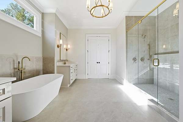 - Bookcases, Crown Molding, Disappearing Attic Stairs, Double Vanity, Dry Bar, Entrance Foyer, High Ceilings 10 ft Main, High Speed Internet, Recessed Lighting, Tray Ceiling(s), Walk-In Closet(s)