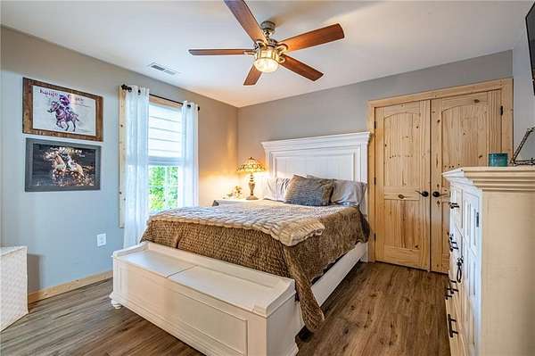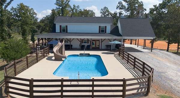 Welcome to a rare, turn-key equestrian estate offering a fully developed horse breeding, training, and show facility set against a stunning mountain backdrop. Thoughtfully designed for serious horsemen while remaining equally inviting as a private retreat, this property delivers both function and beauty at every turn. A private, gated entrance welcomes you along a serene creekside drive, opening to sweeping mountain views and a meticulously planned equestrian compound. The land features eight rotating, fenced pastures, each carefully maintained and labeled for efficient management of broodmares and stallions. A dedicated creekside pasture includes a round pen with power and a well house equipped with timed lighting-ideal for cycling broodmares. A stallion-specific pasture and a full-size, WPRA-standard lighted arena with announcer's stand complete the professional training and event setup. Perched on a hilltop overlooking the entire operation, the 2,400-square-foot custom home blends comfort with functionality. The home offers five bedrooms and 2.3 baths, including a primary suite on the main level, open-concept living spaces with tongue-and-groove vaulted ceilings, tile flooring, and a mudroom/laundry designed for ranch life. Wraparound porches provide panoramic views of the pastures and mountains, while upstairs features include Jack-and-Jill bathrooms and an additional laundry area. An in-ground sports pool with waterslide creates the perfect setting for relaxation or entertaining. The show-ready barn and breeding facility was built for professional-level equine care. It includes 13 stalls designed for broodmares and stallions, each with individual water access, along with a tack room, wash rack, bathroom, and laundry. Additional amenities include a dog kennel, gym, and an upstairs 1,200-square-foot, two-bedroom apartment currently outfitted as a breeding lab with full equipment, lounge area, and private guest suite. Additional improvements include covered RV parking, a hay barn, and a fully operational welding shop, offering flexibility for personal use or income generation. With opportunities for boarding, breeding, training, events, or short-term stays, this estate presents exceptional versatility. A truly rare opportunity to own a complete equestrian facility where lifestyle, land, and infrastructure come together seamlessly. Agent owned property.