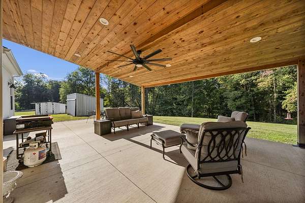 Welcome to your own private farm retreat! This versatile 27.19-acre property offers the perfect blend of modern comfort, natural beauty, and agricultural potential. Whether you're looking to enjoy the peace and privacy of country living, start a mini farm, or explore income-generating crop opportunities, this property is full of possibilities. The 4-bedroom, 2-bath farm house has been thoughtfully updated with new siding, subflooring throughout, shiplap accents, concrete countertops, new interior doors and trim, and the addition of a spacious covered front porch and back patio, ideal for relaxing and taking in the serene surroundings. Inside, the layout offers ample space for family living, while the unfinished walkout basement provides a perfect storm shelter and excellent potential for future expansion, workshop space, or additional storage. Step outside to a 48x36 detached metal barn, roughed in for plumbing and electrical -- perfect for livestock, equipment, or future workshop. The property also includes an 8x16 shed, ideal for tools, feed, or garden storage. Perfect for those looking to raise horses, pigs, goats, cattle, and chickens -- and yes, there's a chicken coop already in place! Agricultural features include: Potential crop rotation with pumpkins, soybeans, corn, and hay, natural wild blackberry trees, Fertile ground for gardening or expansion. Wildlife is abundant -- enjoy frequent visits from deer and turkey, making this a paradise for nature lovers and hunters alike. This is a rare opportunity to own a turnkey property with room to grow -- both inside and out. Peaceful, private, and full of potential. Schedule your private showing today!