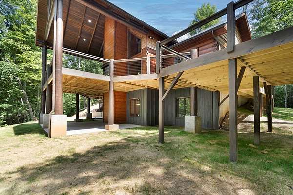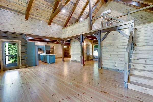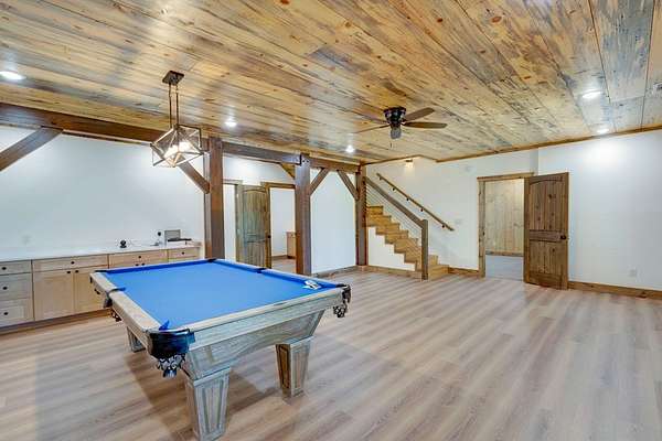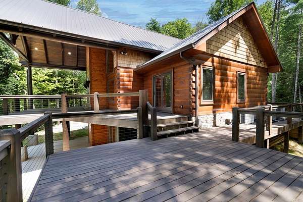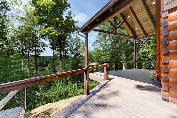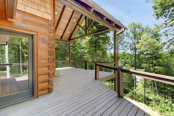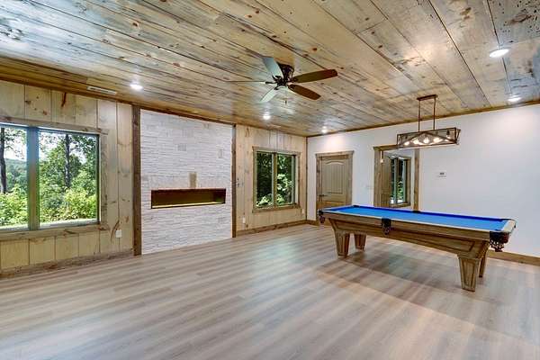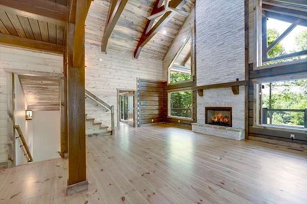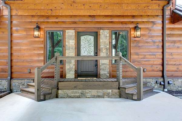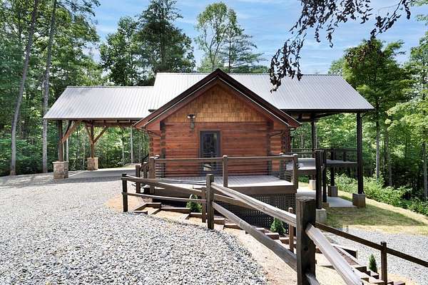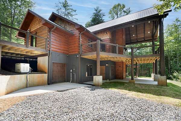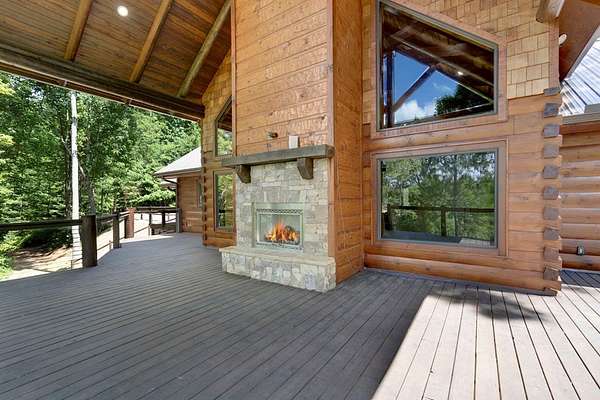This gated community offers a stunning log-style mountain home showcases exceptional custom design and craftsmanship throughout. Rich wood details accent every room, highlighted by a magnificent vaulted ceiling with exposed beams and a beautiful custom finish. This home provides an impressive two-story stacked stone fireplace serves as the centerpiece of the main living area, creating a warm and inviting atmosphere. The chef's kitchen is thoughtfully designed with double ovens, a gas cooktop, refrigerator, and a charming farmhouse style sink, all complemented by gleaming wooden floors that flow throughout the main level. The Master Bathroom offers a tiled shower and a double vanity for added comfort and style. Also, the Master Bedroom is on the main level and has glass sliding doors that open up to a spacious outside deck. Upstairs, a versatile loft provides the perfect space for a guest bedroom, office, playroom, or relaxing sitting and that space offers a great mountain view through spacious windows. Added to the loft is a split heat and air system for extra comfort. The downstairs lower level is ideal for entertaining, featuring a pool table, glass pebble fireplace, dry bar, and two additional bedrooms. Outdoor living is equally impressive, with a covered deck showcasing a stone fireplace, ample covered and uncovered deck space, and breathtaking views overlooking a tranquil pond and surrounding mountains. This home perfectly combines rustic elegance with modern luxury for the ultimate mountain retreat. If all this was not enough, this home includes a utility garage and Generac Generator to give you an added peace of mind.