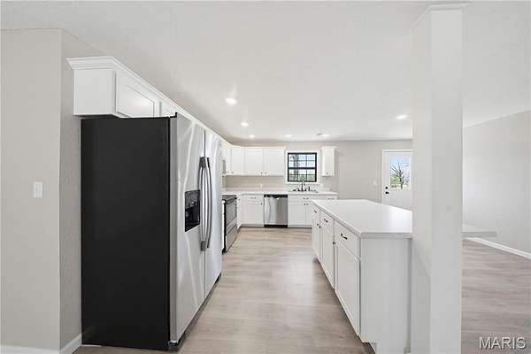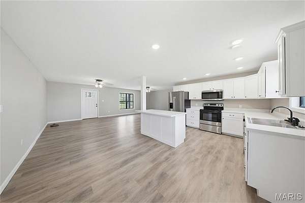 Completely remodeled four bedroom 2 bath home on 5 acres m/l with beautiful pond views. This home features a spacious living area, kitchen with adjoining dining space, and a functional layout for everyday living. The primary bedroom offers large windows overlooking the pond, along with a private bath and walk-in closet. An additional bedroom also features pond views, plus another bedroom for added space. A step down front room provides flexibility for a 4th bedroom, rec room, or office. Updates include new flooring, windows, siding, and more. Enjoy the back deck and nicely landscaped yard. Detached outbuilding previously used as living quarters includes electric, water, and septic—great for guest space or rental potential. Ideal for mini farm or country living.
