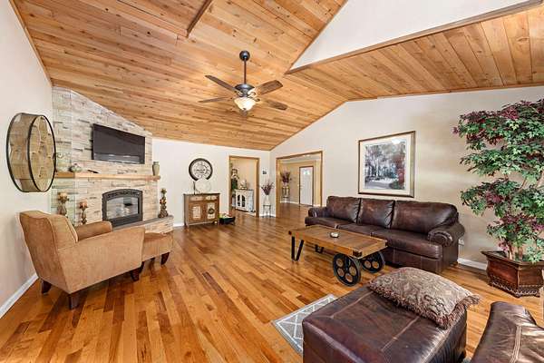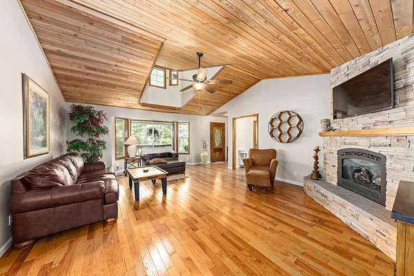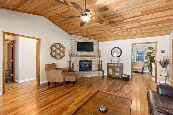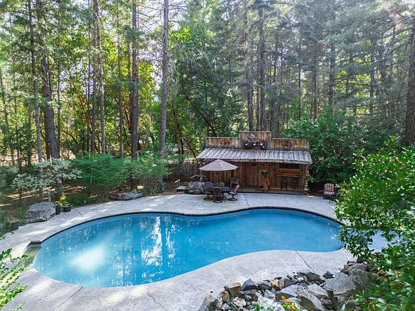 This Unique, One of a Kind Property on 3.98 acres has it all!! Main House, ADU, 3700 sq ft Shop with Bar, In-ground pool with Rustic Pool House and full bath, Hot tub, Koi pond with waterfall and an old mining town feel, Pole Barn and an Oversized 2 Car Garage. The Main house is 1880 sq ft with 3 Bedrooms, an Office and 2 Bathrooms. Split floor plan with updates throughout include Hickory hardwood flooring in the main living areas, gas fireplace, and remodeled kitchen. The ADU is 800 sq ft with 2 bedrooms and half bathroom, full kitchen. The Shop includes RV sized automatic doors, a Vehicle Lift, Bar Area, Full Bath, and washer/dryer hookups. Follow the paths around the property while being transported back in time and taking in the beautiful landscaping and enjoying the abundance of outdoor entertainment areas and wildlife. Fully fenced property with 2 automatic gates,2 wells, main house generator, greenhouse, and plenty of room for all your toys, friends and family.
