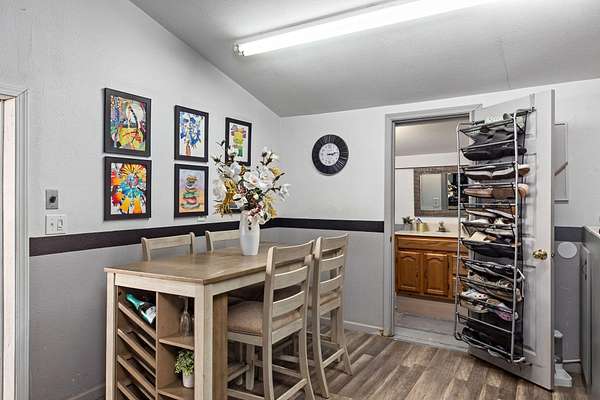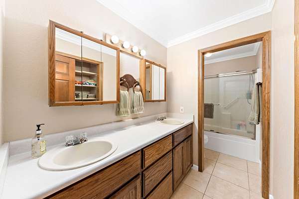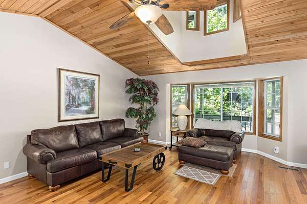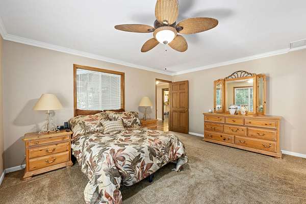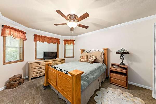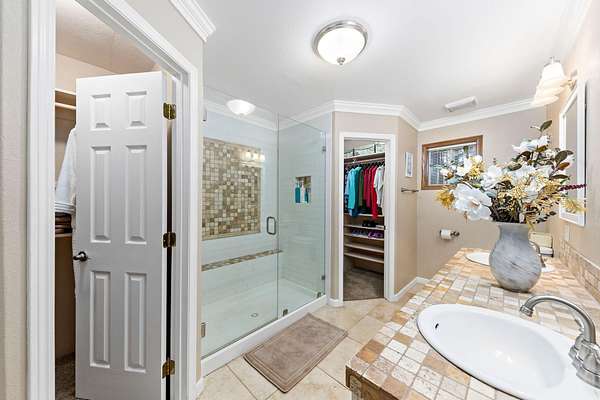 - Ceiling Fan(s), Double Vanity, Fiberglass Stall Shower, Granite Counters, High Speed Internet, Kitchen Island, Primary Downstairs, Shower/Tub Combo, Tile Shower, Vaulted Ceiling(s), Walk-In Closet(s)