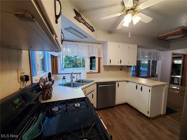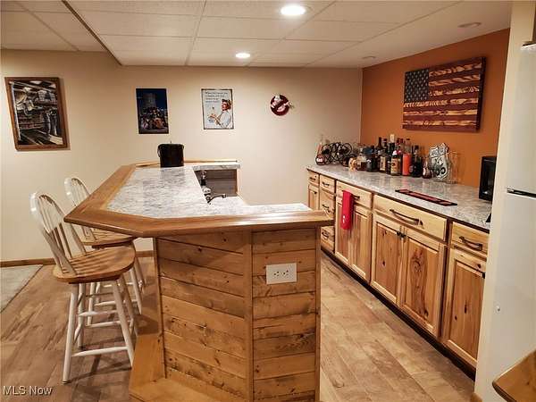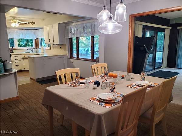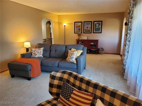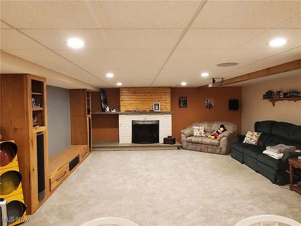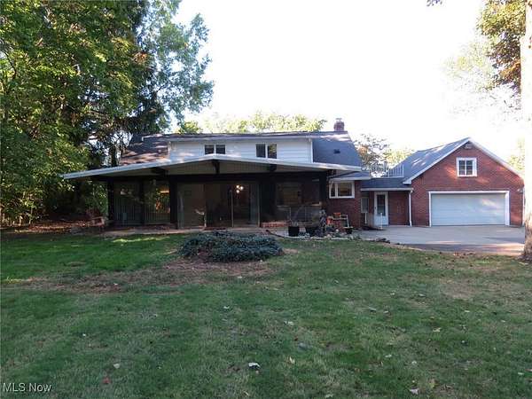 Fabulous Find! Welcome to the fall season with great views surrounding this charming 3 bedroom, 2.5 bath cape nestled on 2.36 acres! This beautiful brick & stone home features a front porch, inviting entry, spacious living room with a woodburning fireplace, open dining room & applianced kitchen with plenty of cupboards, a corner sink & coffee bar, a large 4 season sunroom/family room with sliders to the exterior as well as a 1st floor home office/bonus room near both family room & as an extension of the primary bedroom and 2 bathrooms. Bedrooms include a first floor bedroom as well as 2 bedrooms upstairs with another full bath. Upstairs boasts of a second floor walk-in attic and plenty of side storage space. Full basement includes an updated finished rec room/theater room complete with wood burning fireplace, built-in bookcases, movie projector & raised bar/kitchen for entertaining. Lower level also features extra storage, laundry and walk-up access from basement to the backyard. Outside you will find a garden, firepit, koi pond with waterfall, covered back patio complete with porch swing & side patio, woods, a ravine, plenty of parking (including RV parking), a 2 car attached garage AND a long private driveway back to an extra 2 car garage (18x22 plus 17x30) with metal roof & concrete floor. Some of the many updates include: pressure tank (2024), dishwasher (2024), water softener (2021), living room fireplace insert (2021), lean-to garage (on right of extra outbuilding 2019), hot water tank (2019), some newer windows & sewer (2016). You will FALL in love with all this property has to offer.