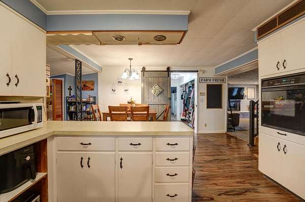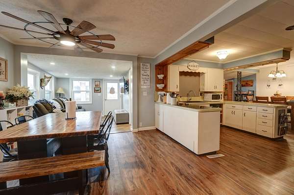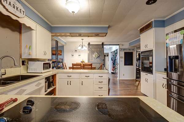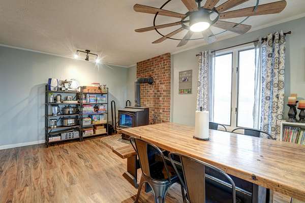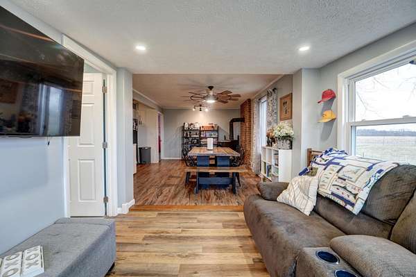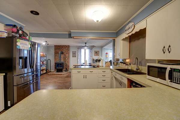 Country living at its best-with lots of updates! This well-cared-for 3BR/2BA home offers 2,016 sq ft of comfortable living space on 3.336 acres. Step inside to an open, inviting layout featuring a large living room with a wood-burning fireplace, family room, and an eat-in kitchen with plenty of room for gatherings. The dining room adds extra charm with a cozy wood stove-perfect for those crisp country evenings. You'll also love the practical features: entry/mudroom, utility room, and an oversized 2-car garage. Move-in ready and thoughtfully updated throughout to fit today's busy lifestyle. Outside, enjoy a covered front porch, back patio, fenced acreage, and a large barn ideal for livestock, equipment, or storage. Room to roam, work, and unwind-this is the peaceful country lifestyle you've been waiting for. Don't miss it!