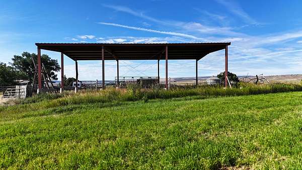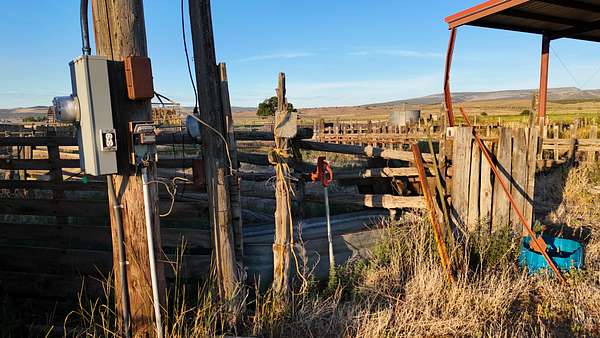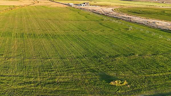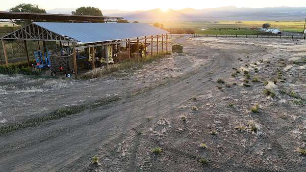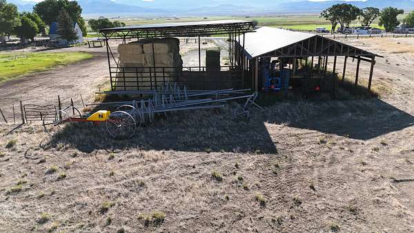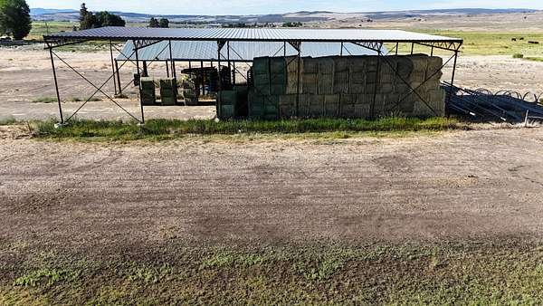 On-site improvements include two hay barns totaling 10,000 square feet of covered storage, perimeter fencing, stock corrals near the highway, and existing agricultural infrastructure. Well depths in the region range from 80 to 150 feet, providing reliable groundwater access.