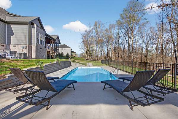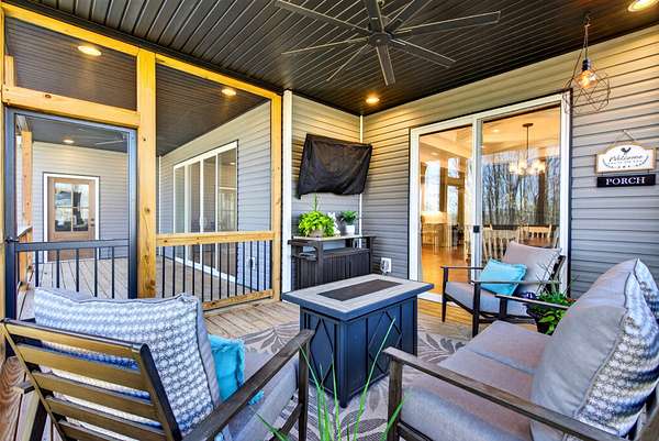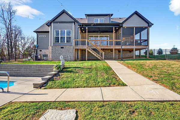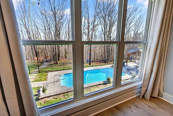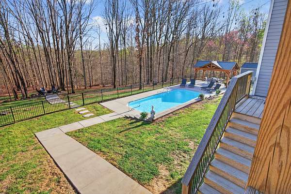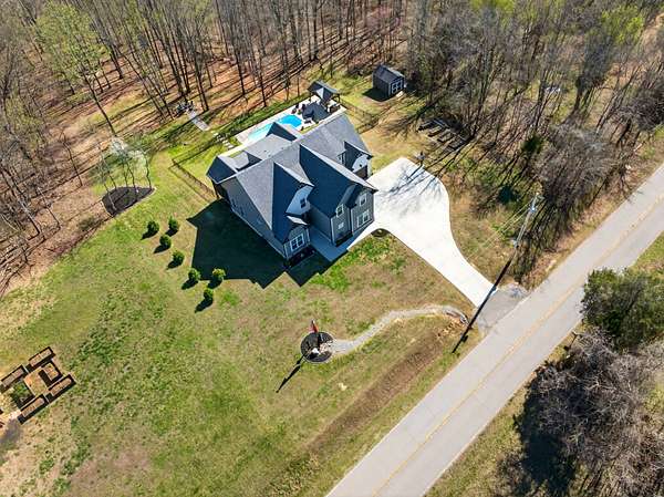 Tucked away on over 5 private acres, this beautifully designed home offers the perfect blend of space, comfort, and modern living. From the moment you arrive, you'll notice a peaceful setting and room to breathe, which is something that seems harder and harder to find. Inside, the open concept layout is filled with natural light, high ceilings, and thoughtful craftsmanship throughout. The heart of the home is a stunning kitchen with a large island, custom cabinetry, and seamless flow into the living and dinning areas, perfect for everyday living and entertaining. With 4 bedrooms plus a dedicated office space and even a spacious bonus room, there's flexibility for whatever your family or guests need. The primary suite offers a true retreat with a spa like bathroom featuring a soaking tub and walk-in tile shower, dual vanities, and a walk-in closet with plenty of shelves and storage. Two hot water heaters, energy efficient spray foam insulation, walk in attic space for all the things you want to keep stored out of the way of your garage space, electrical outlets in the floor of the living room for those lamps and electric couches as well. Step outside where the lifestyle you have been dreaming of really comes to life, enjoy peaceful mornings on a covered and screened in porch, unwind on the expansive deck, cool down on a hot summer day with an in-ground pool, host cook outs, and enjoy the outdoor gazebo that includes electric, plugs for convenience, and an overhead fan. Gather around the fire pit for hot dogs and s'mores, or simply take in the view with no rear neighbors in sight. The possibilities are endless here. Wildlife like deer and turkey are all around and often caught on the trail cam. There is plenty of space to relax, entertain, and truly enjoy where you live.