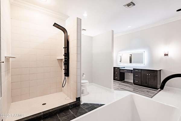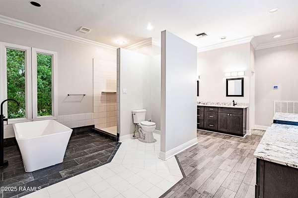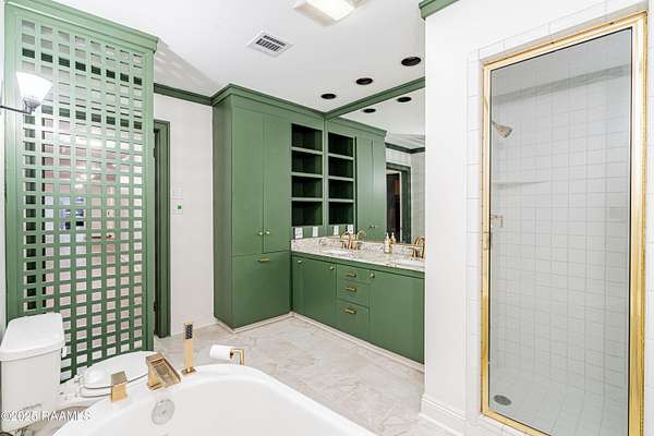 - 9+ ft Ceiling, Attic Access, Beamed Ceilings, Built-Ins, Computer Nook, Crown Molding, Double Vanity, Dual Closets, Electric Dryer Con, Electric Washer Con, Garden Tub, Gas Dryer Con, Gas Stove Con, Office, Primary Bath, Sauna/Steam, Separate Shower, Standalone Tub, Varied Ceiling Heights, Vaulted Ceilings, Walk-In Pantry, Wet Bar