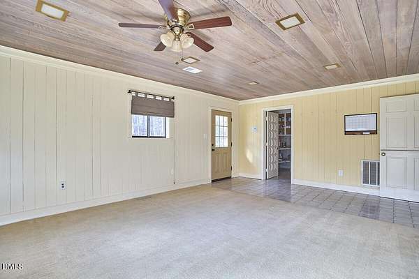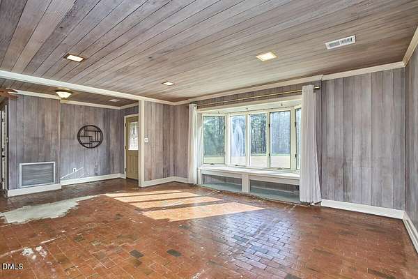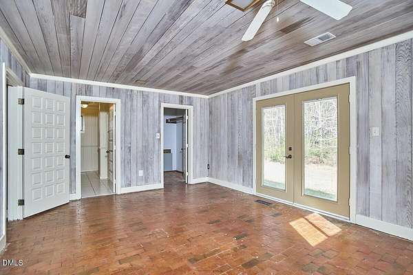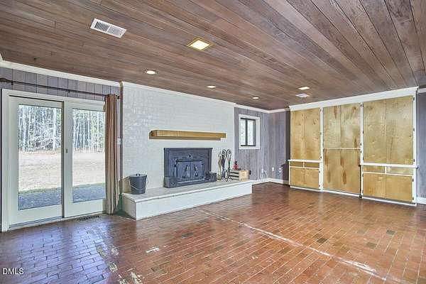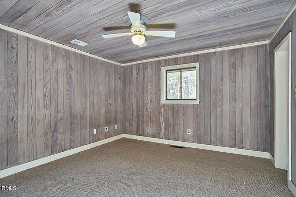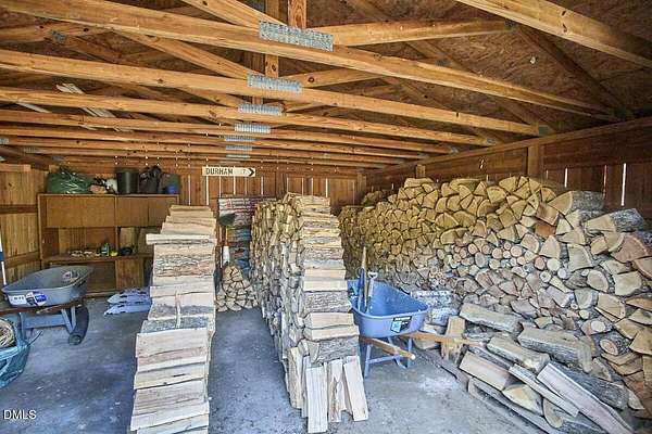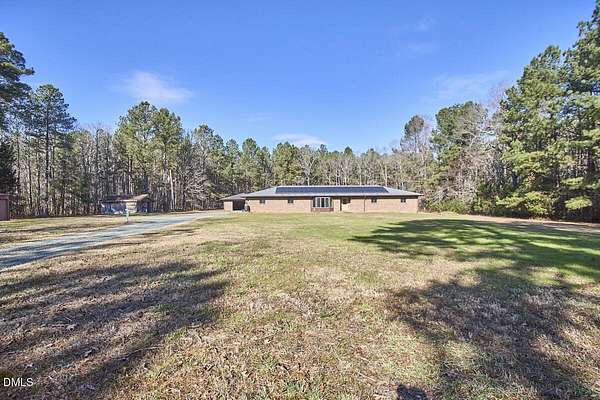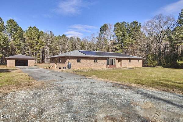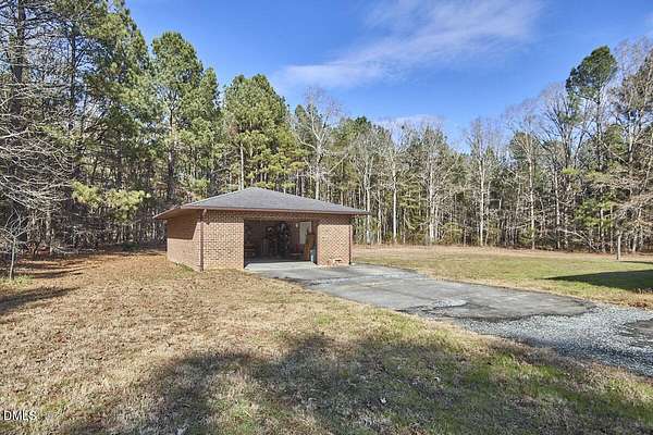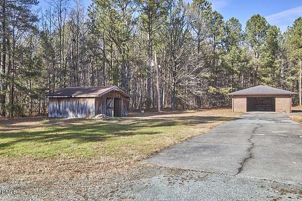 Privacy and seclusion only ten minutes away from downtown Carrboro! This spacious and solid brick ranch with multiple outbuildings sits in the middle of a flat clearing surrounded by your own woods and walking trails. The wired garage has a workshop built in. The large rustic shed is stocked with firewood for the wood stove or fire pit. The oversized garage has room for all your projects and sits near the front of the 8+acres. Recent upgrades include all new septic, efficient attic insulation, and a new heat pump. The home is all one level with an open floor plan around the kitchen dining area flowing into the great room with a huge bay window in front and a warm hearth with cozy wood stove in the back. The primary bedroom has French doors and an en-suite bath and separate walk-in closet. Plenty of room for a home office, craft area, workout space etc. in multiple flex spaces. The laundry room has lots of storage and a chest freezer that conveys. This home is a blank slate for the next folks looking to make it their perfect private retreat.