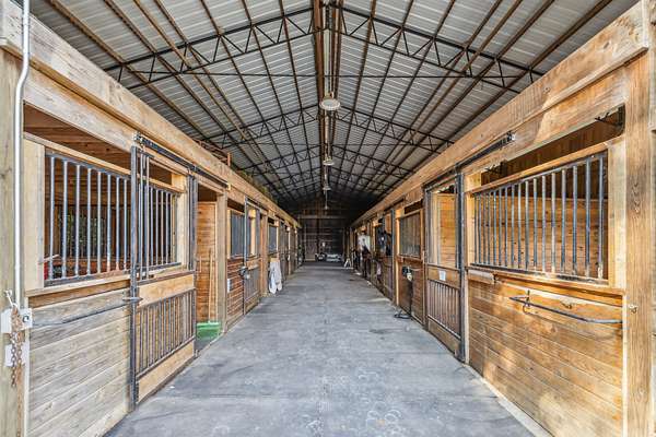 For the dedicated equestrian, the property delivers world-class facilities: two cutting-edge barns offering 15 generously sized stalls complete with automatic watering systems, dedicated tack rooms, feed storage, a separate equipment barn, and comfortable on-site staff quarters. The stalls alone command $1,500+ per month in premium boarding revenue.