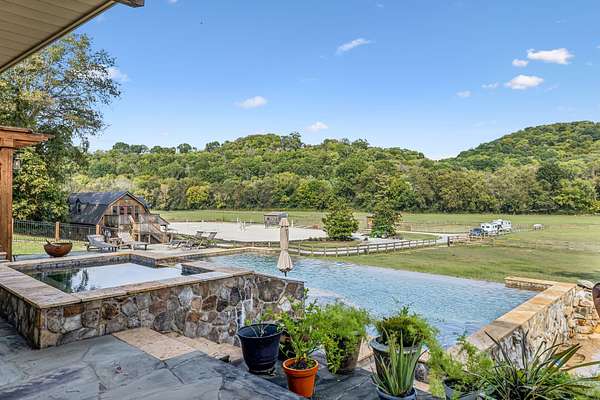 Discover the rare opportunity to own a breathtaking 16+ acre riverfront equestrian masterpiece--where timeless rustic charm meets sophisticated modern luxury, all perfectly tailored for the discerning horse enthusiast. This exquisite modern Craftsman Farmhouse welcomes you with glowing hardwood floors, a chef's galley style kitchen featuring premium Viking stainless steel appliances, three inviting fireplaces, and two serene screened porches ideal for morning coffee or evening relaxation. Step outside to your private infinity-edge pool, where the water seamlessly blends into sweeping views of rolling pastures and the tranquil river beyond--an unparalleled setting for both serenity and celebration.